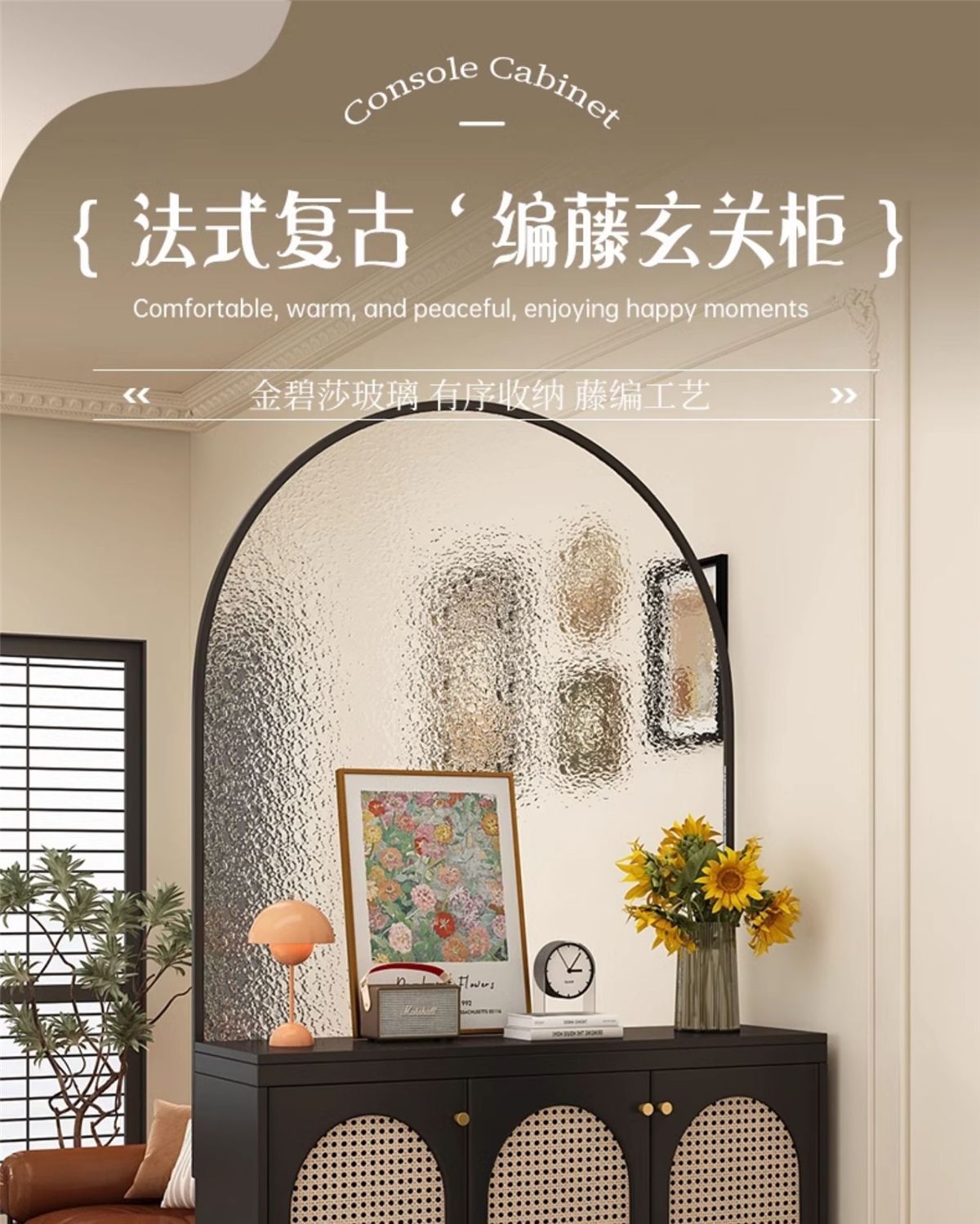 현관 캐비닛, 신발장, 거실 등나무 칸막이, 복고풍 스크린, 가벼운 럭셔리, 고급 유리 칸막이 캐비닛, 소파 뒤 책상스토어 가기