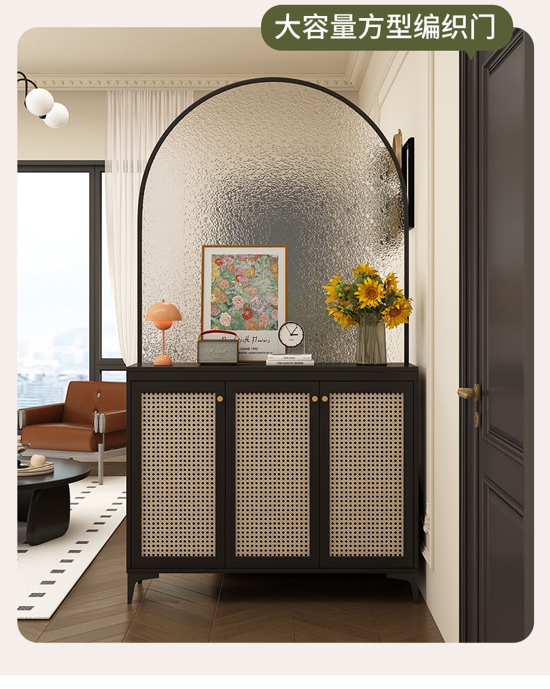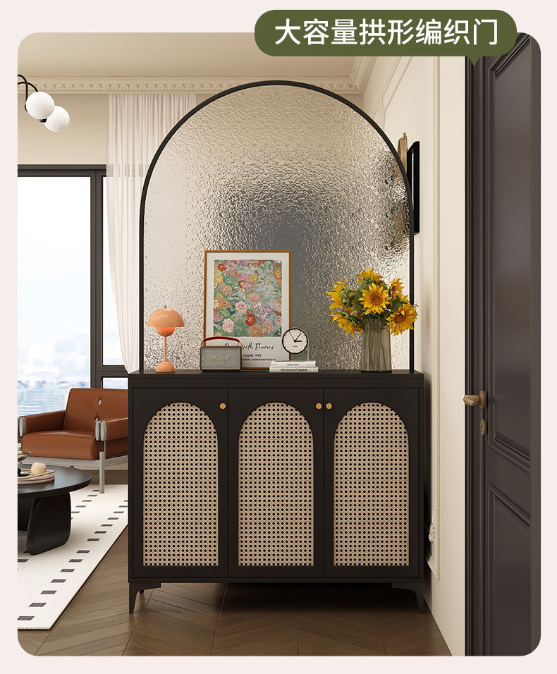 현관 캐비닛, 신발장, 거실 등나무 칸막이, 복고풍 스크린, 가벼운 럭셔리, 고급 유리 칸막이 캐비닛, 소파 뒤 책상