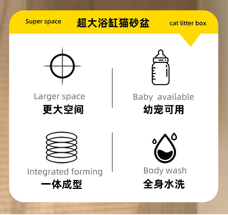 • 특대 욕조 고양이 배변 상자/손잡이 없음 [아이보리 화이트]