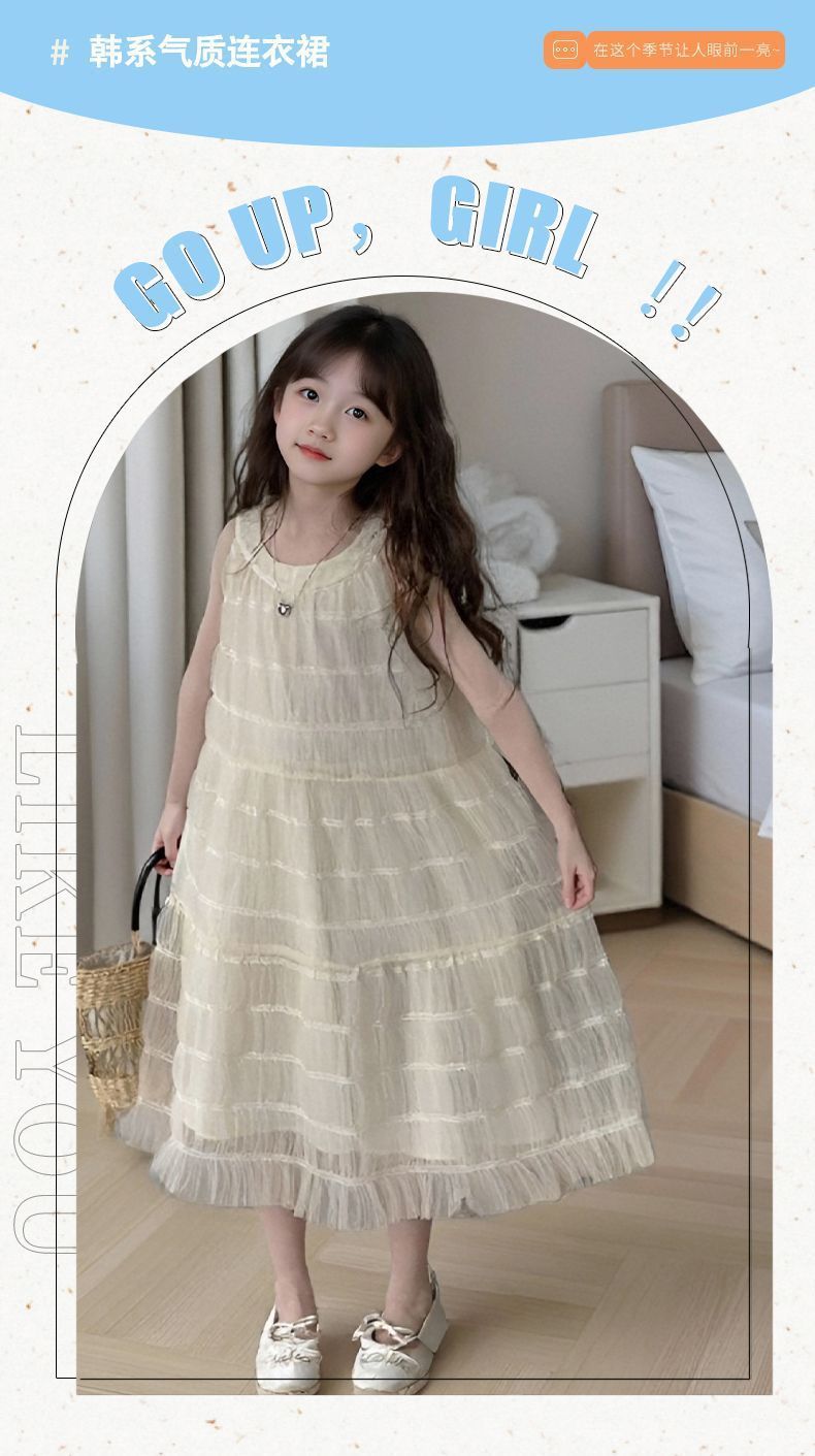 여아 여름 거즈 스커트, 큰 어린이 여름 신작 줄무늬 요정 줄무늬 단색 한국 드레스 조끼 스커트스토어 가기