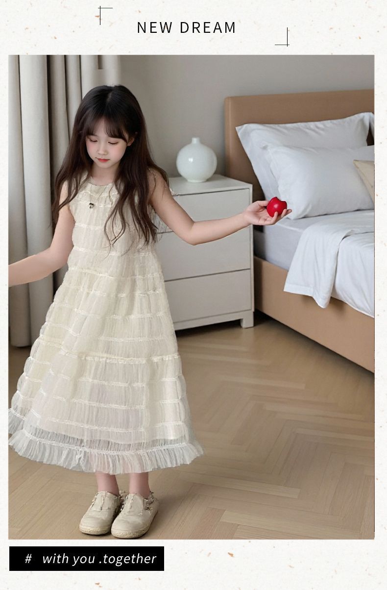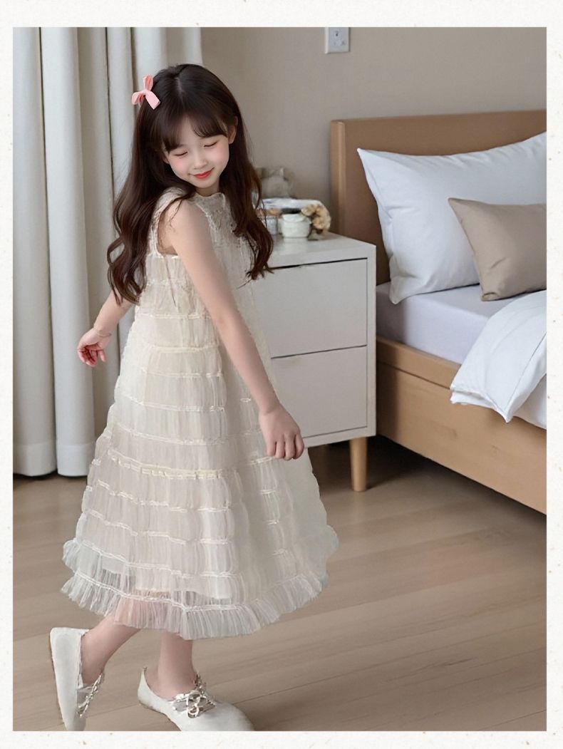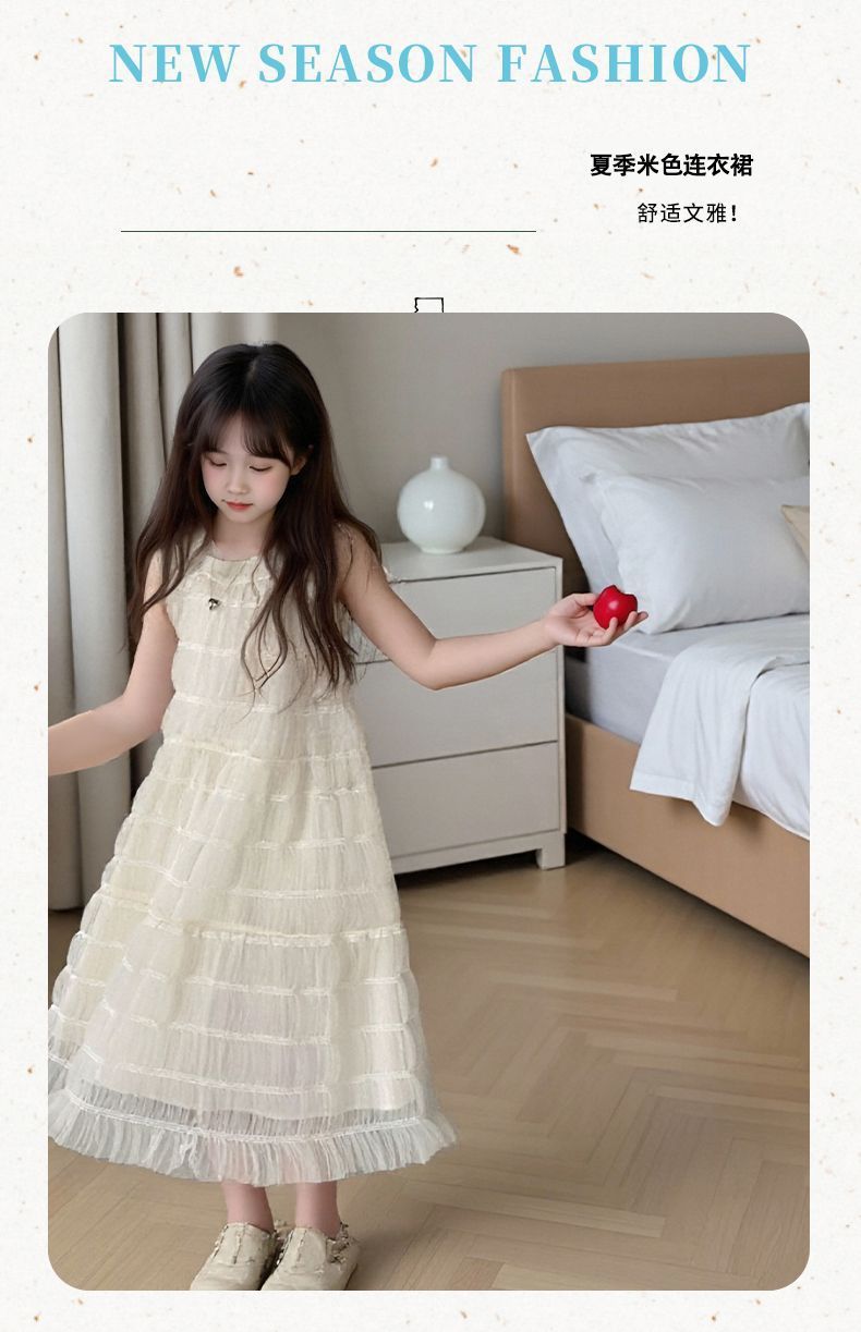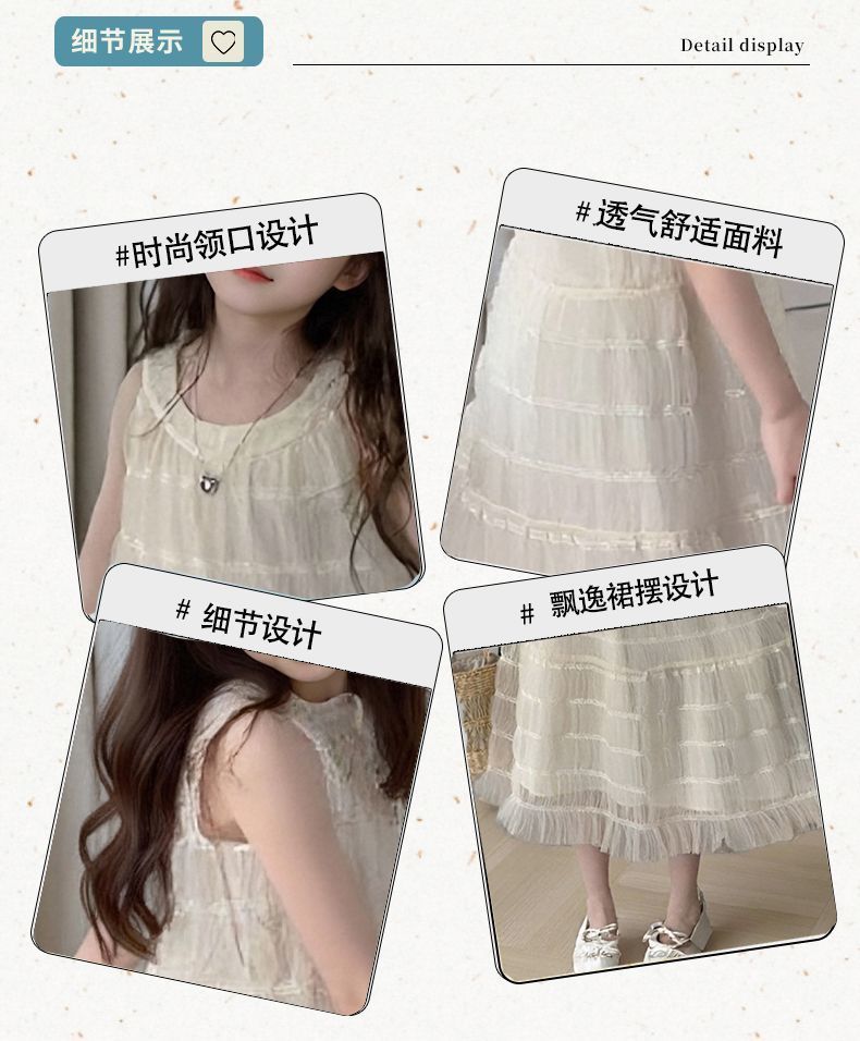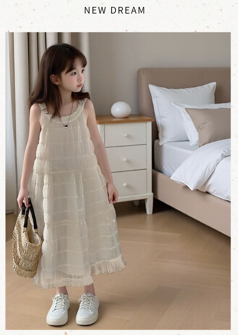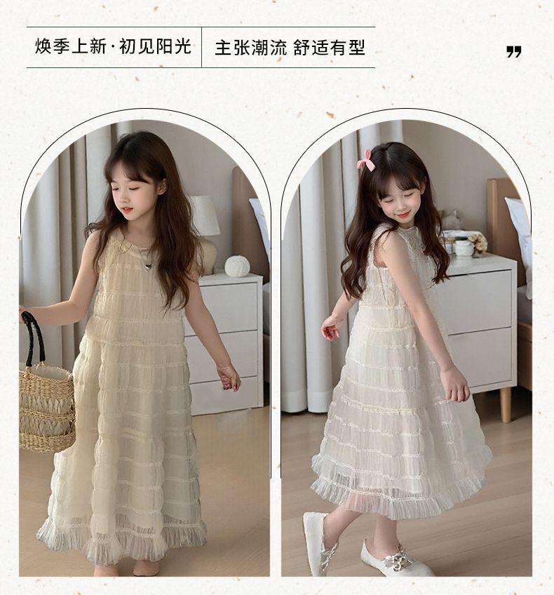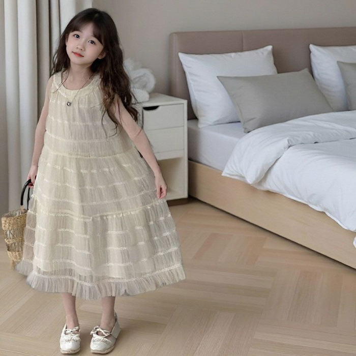 여아 여름 거즈 스커트, 큰 어린이 여름 신작 줄무늬 요정 줄무늬 단색 한국 드레스 조끼 스커트