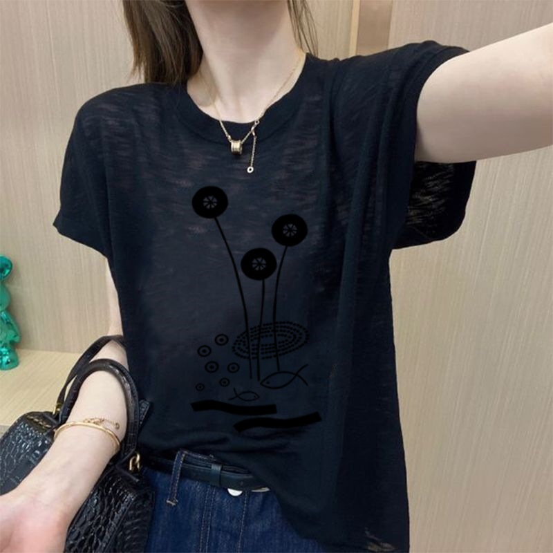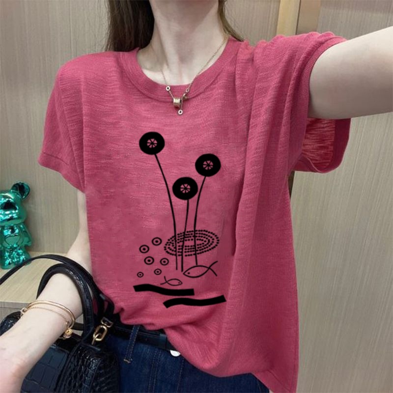 인기 2025 여름 신작 얼음 느낌 여성 반팔 티셔츠 탑 플러스 사이즈 여성 루즈핏 티셔츠