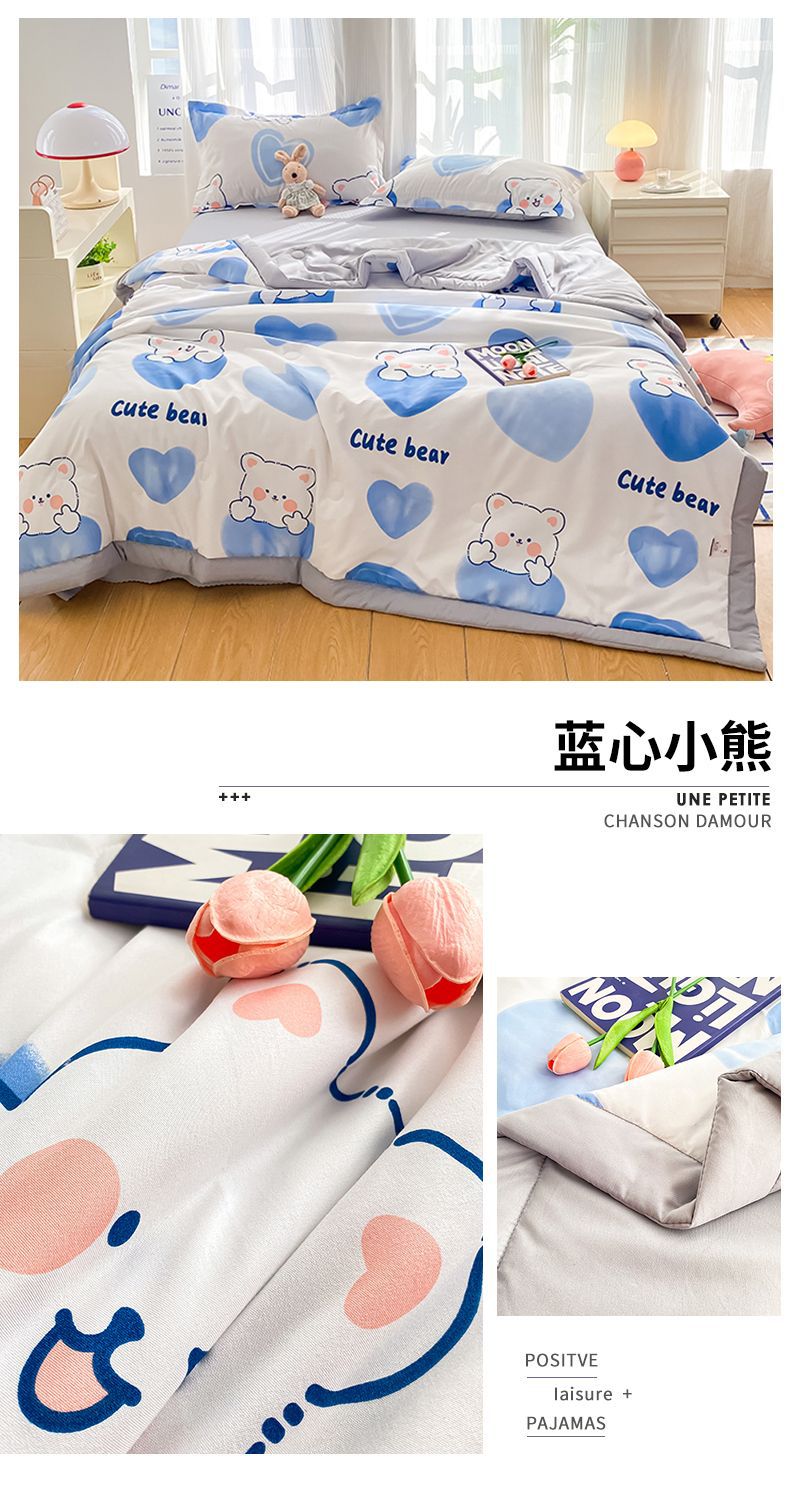 Nanjiren 여름 3피스 이불 세트 2025 새로운 여름 시원한 이불 어린이 낮잠 얇은 이불 기숙사 에어컨 이불스토어 가기