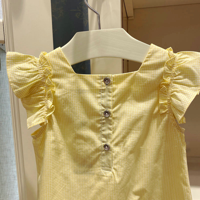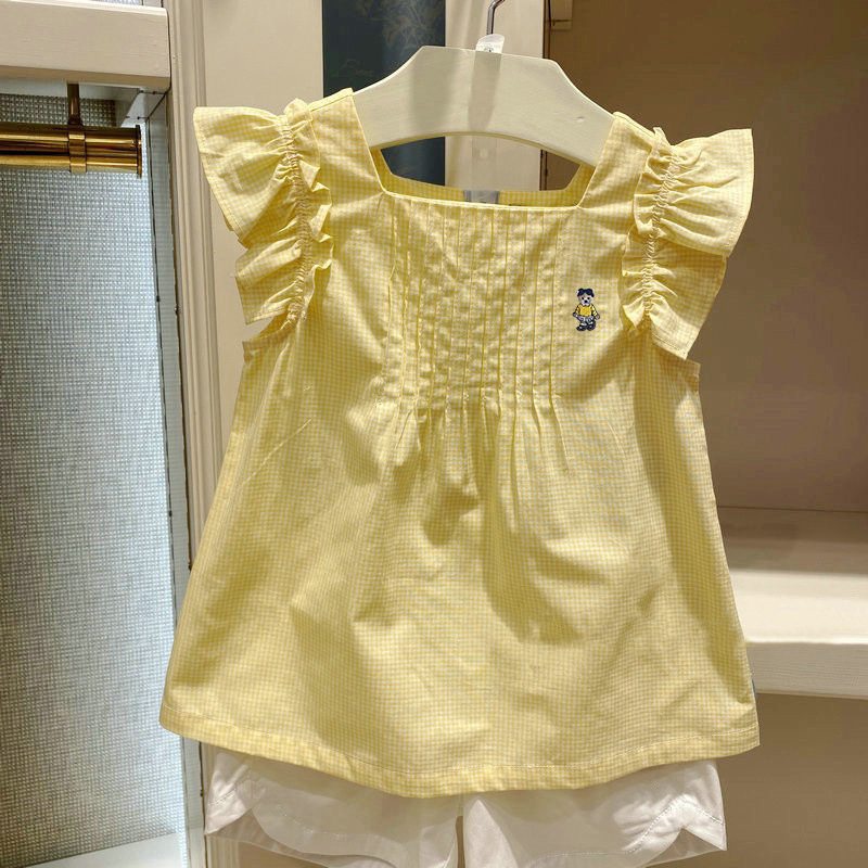 새로운 아동복 여아 여름 얇은 티셔츠 여름 얇은 반팔 여름상의 중대형 아동용 플라잉 슬리브 체크 무늬 반팔스토어 가기