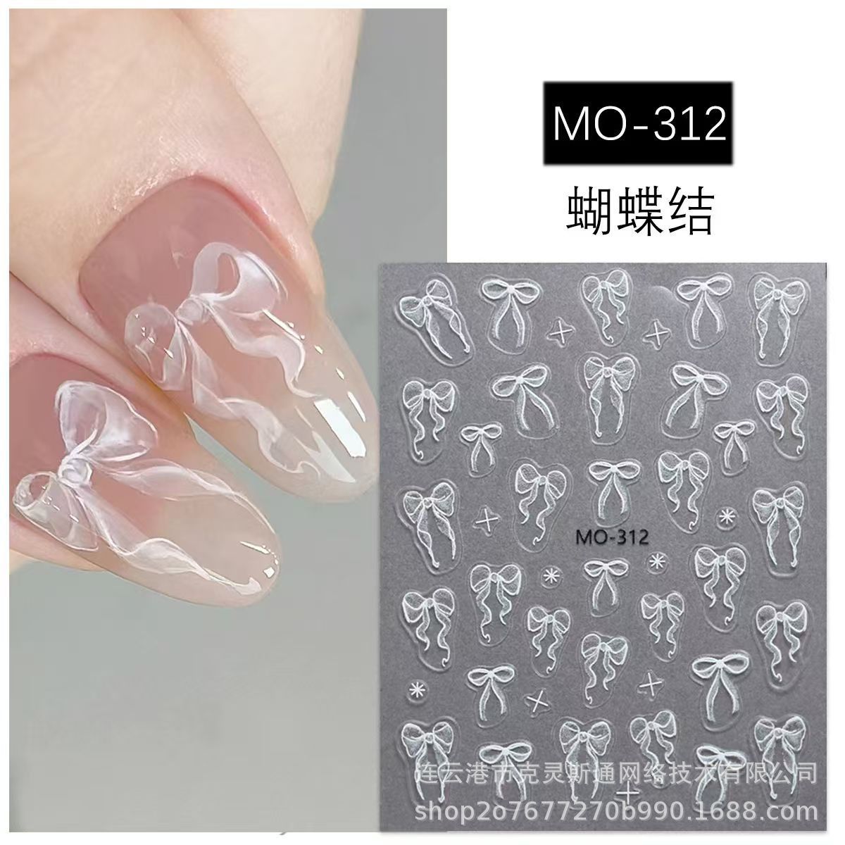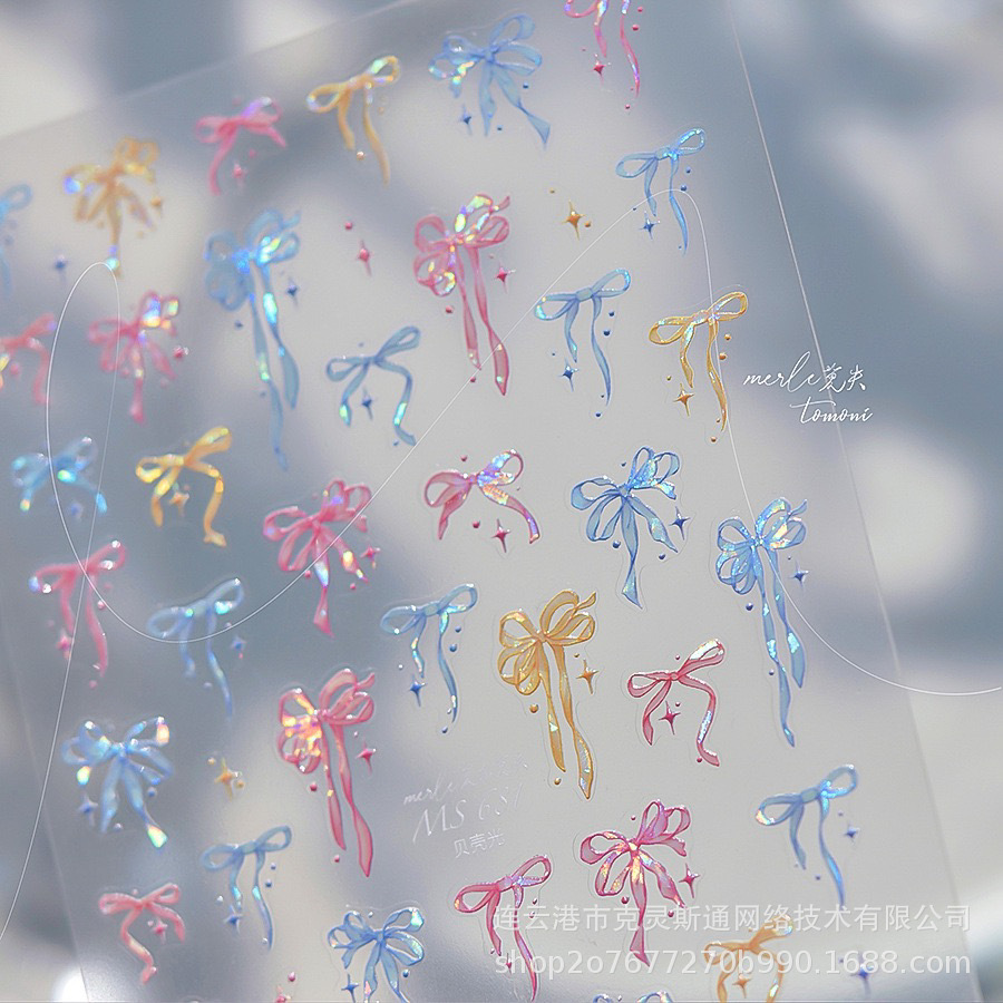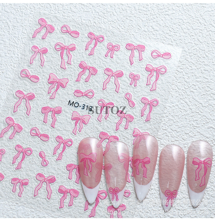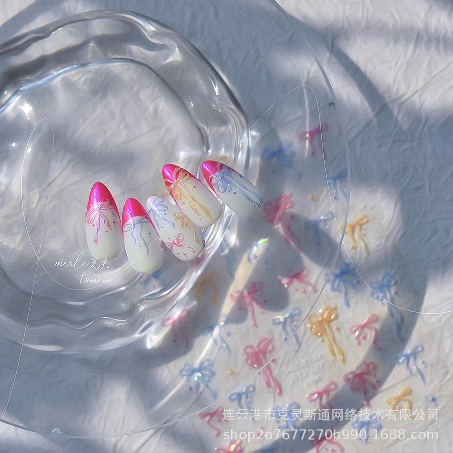 나비 매듭 네일 아트 스티커 양각 입체 귀여운 소녀 하트 핑크 화이트 리본 나비 매듭 네일 스티커 장식