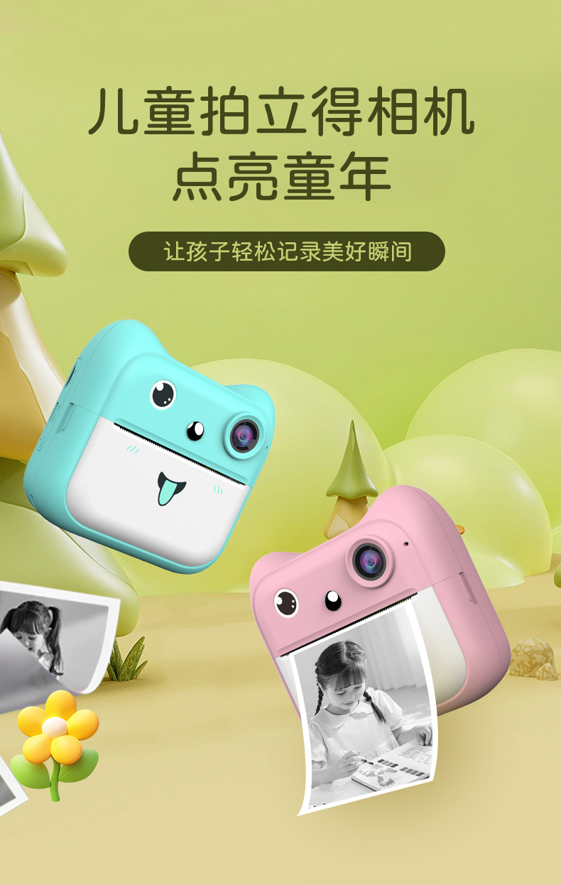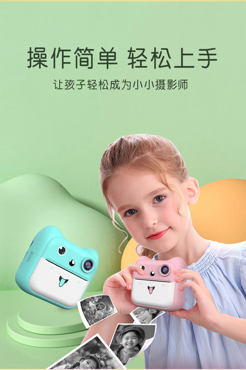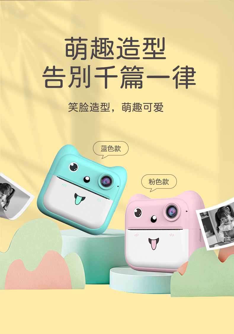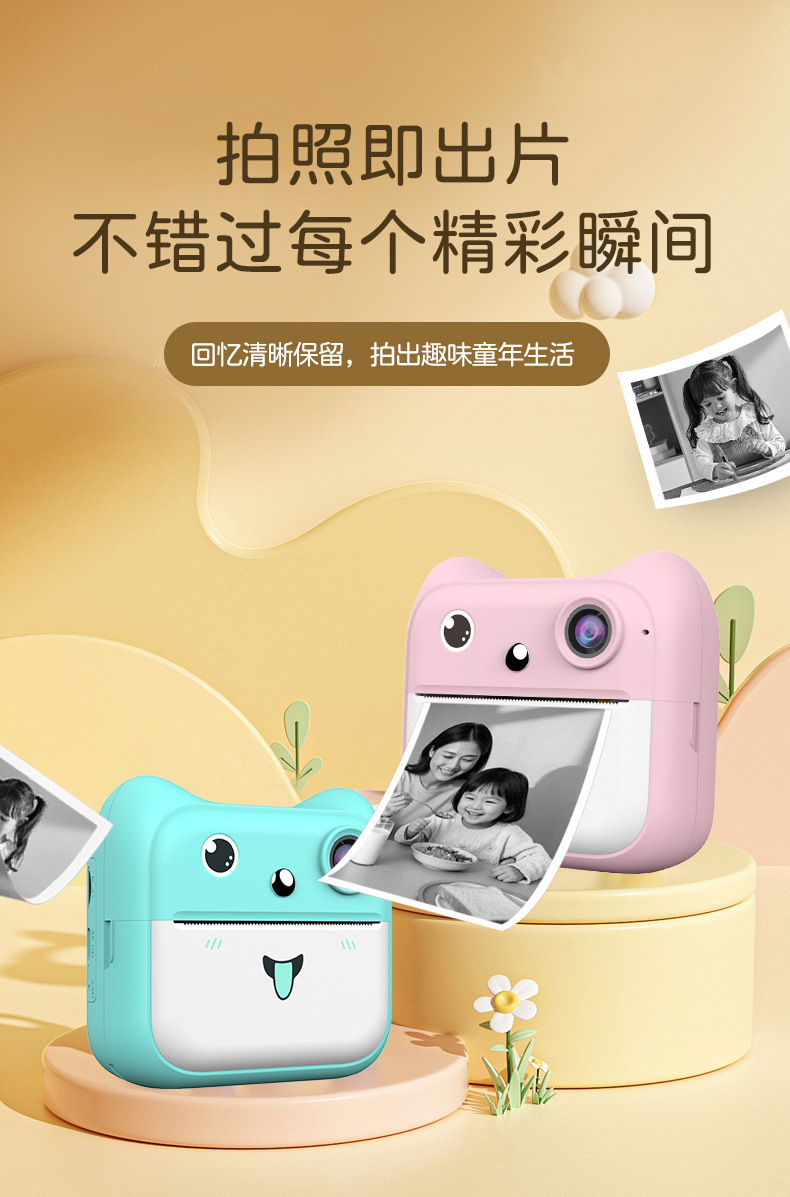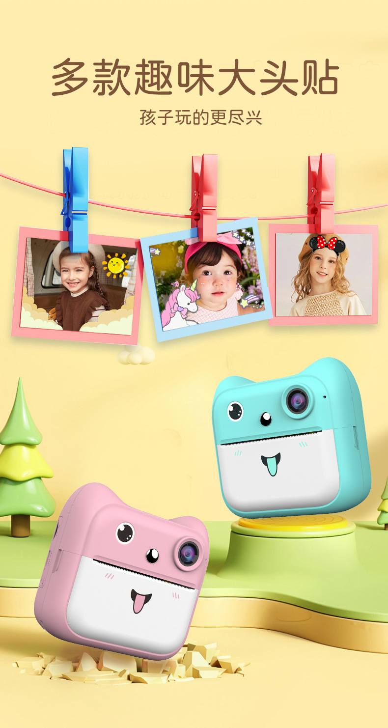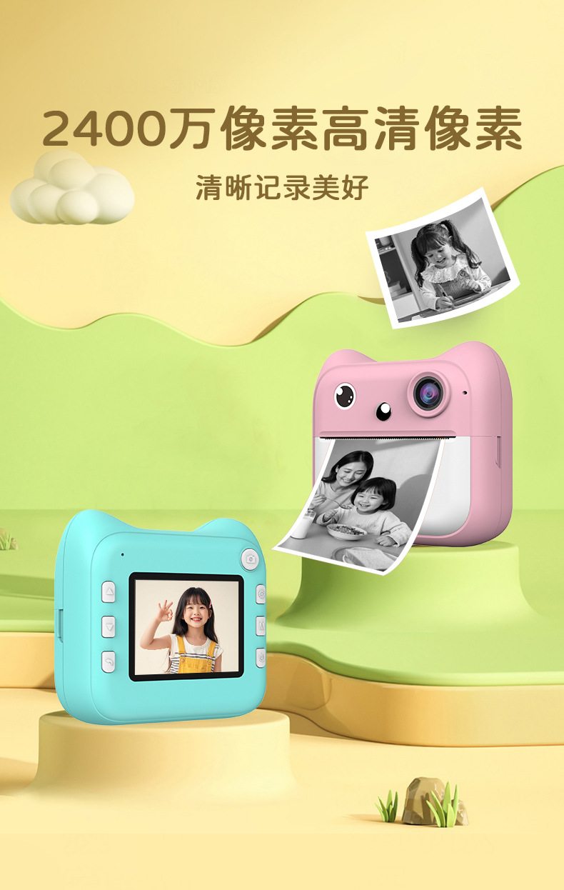 국경을 넘는 어린이용 즉석 인화 카메라 학생용 미니 컬러 고화질 디지털 셀카 카메라 선물 만화