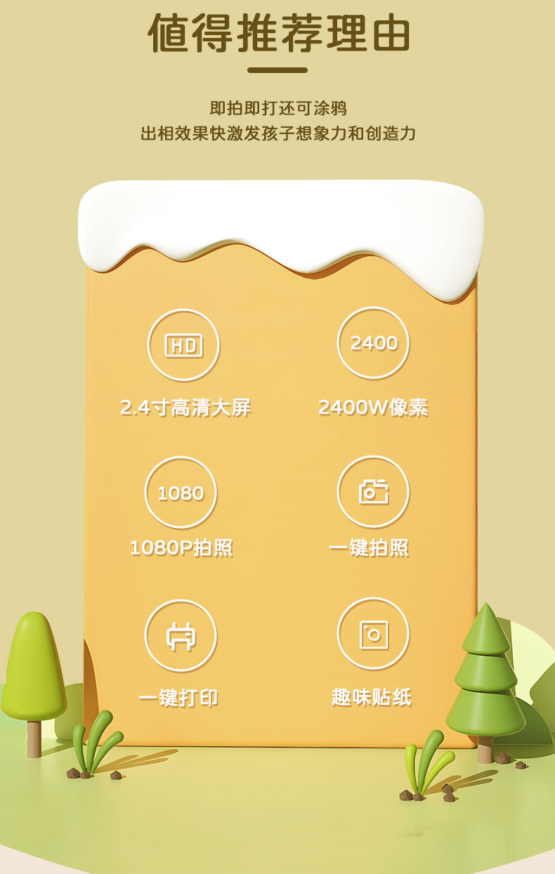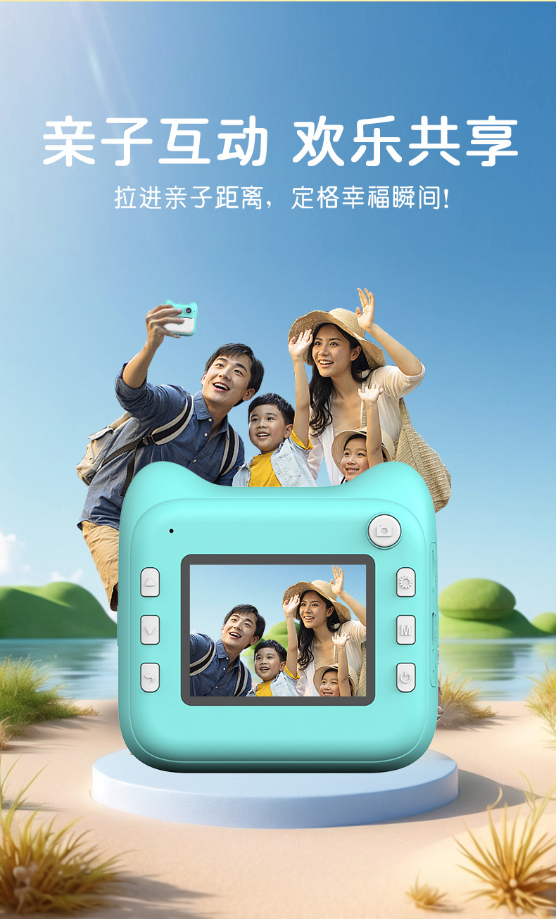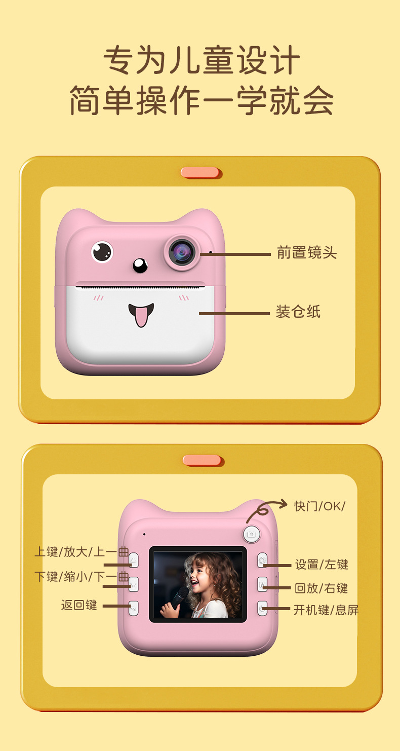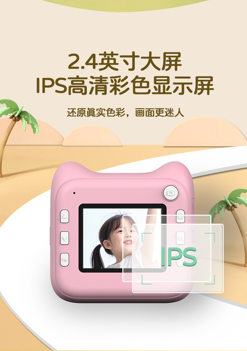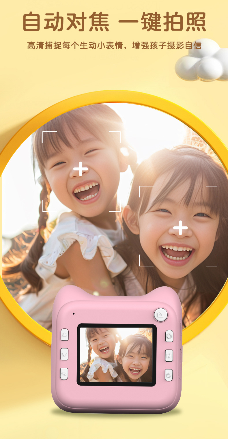 국경을 넘는 어린이용 즉석 인화 카메라 학생용 미니 컬러 고화질 디지털 셀카 카메라 선물 만화