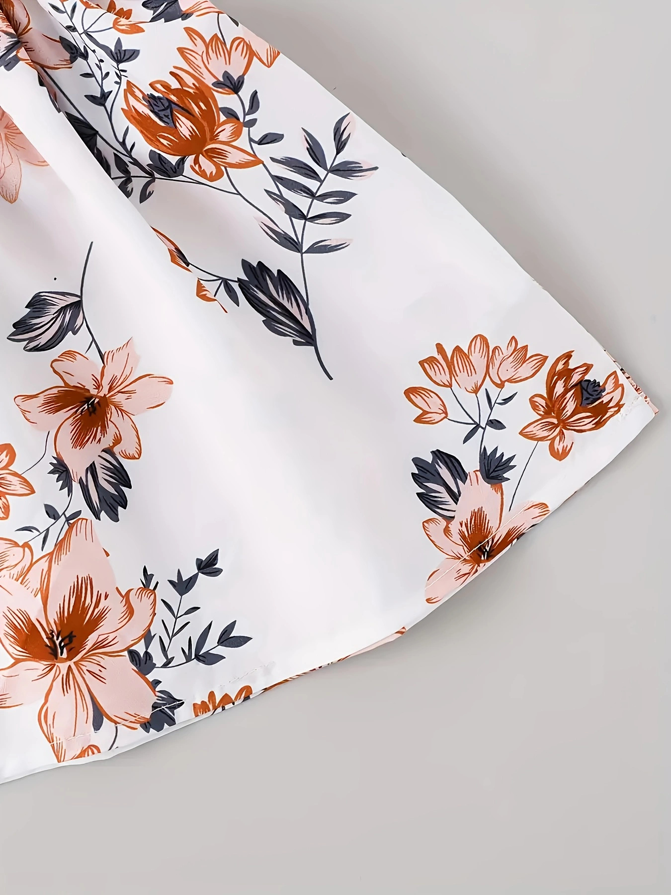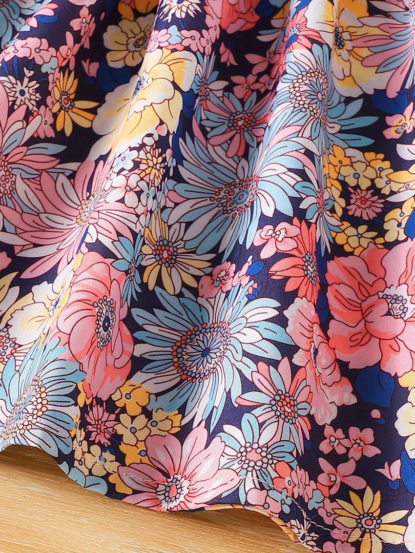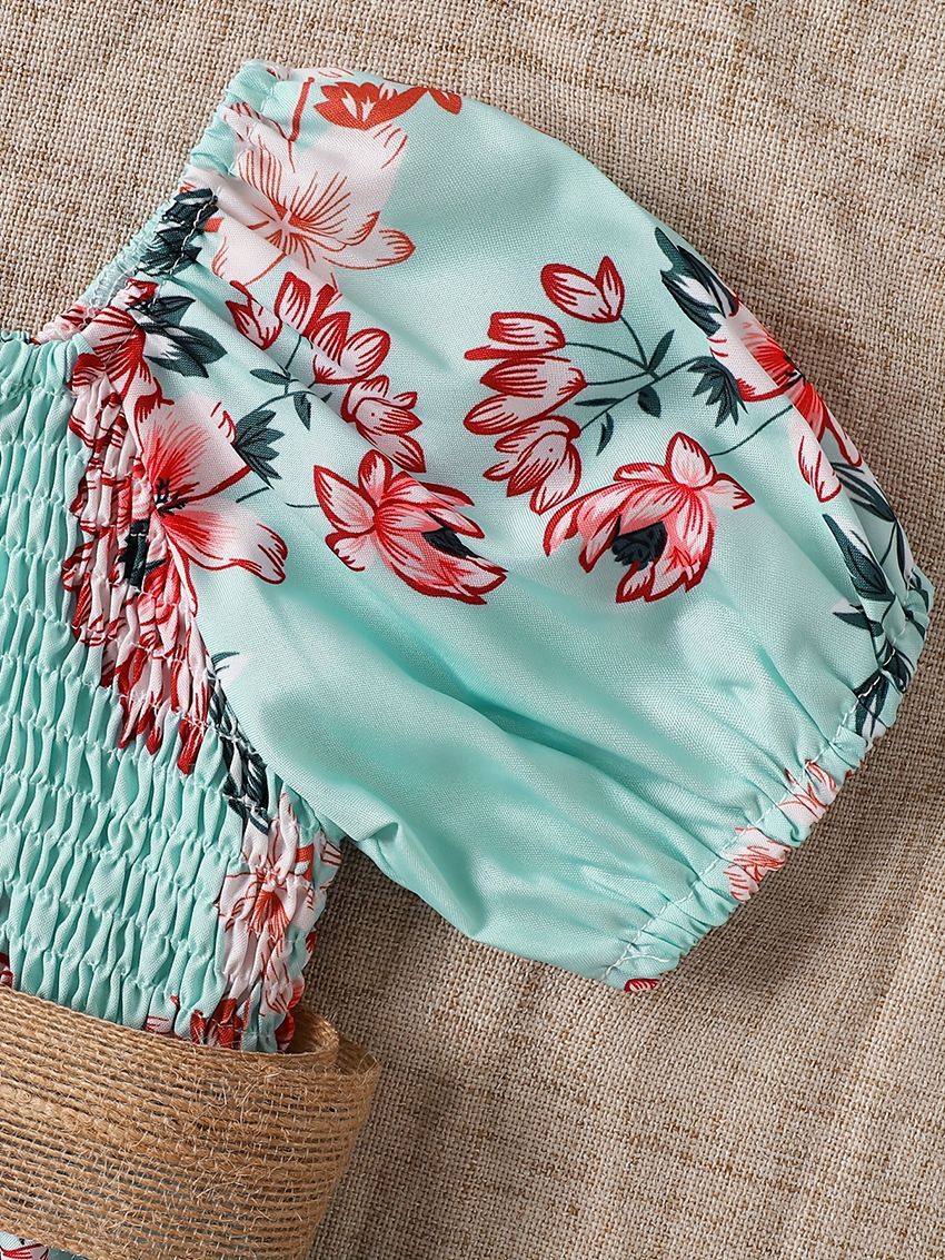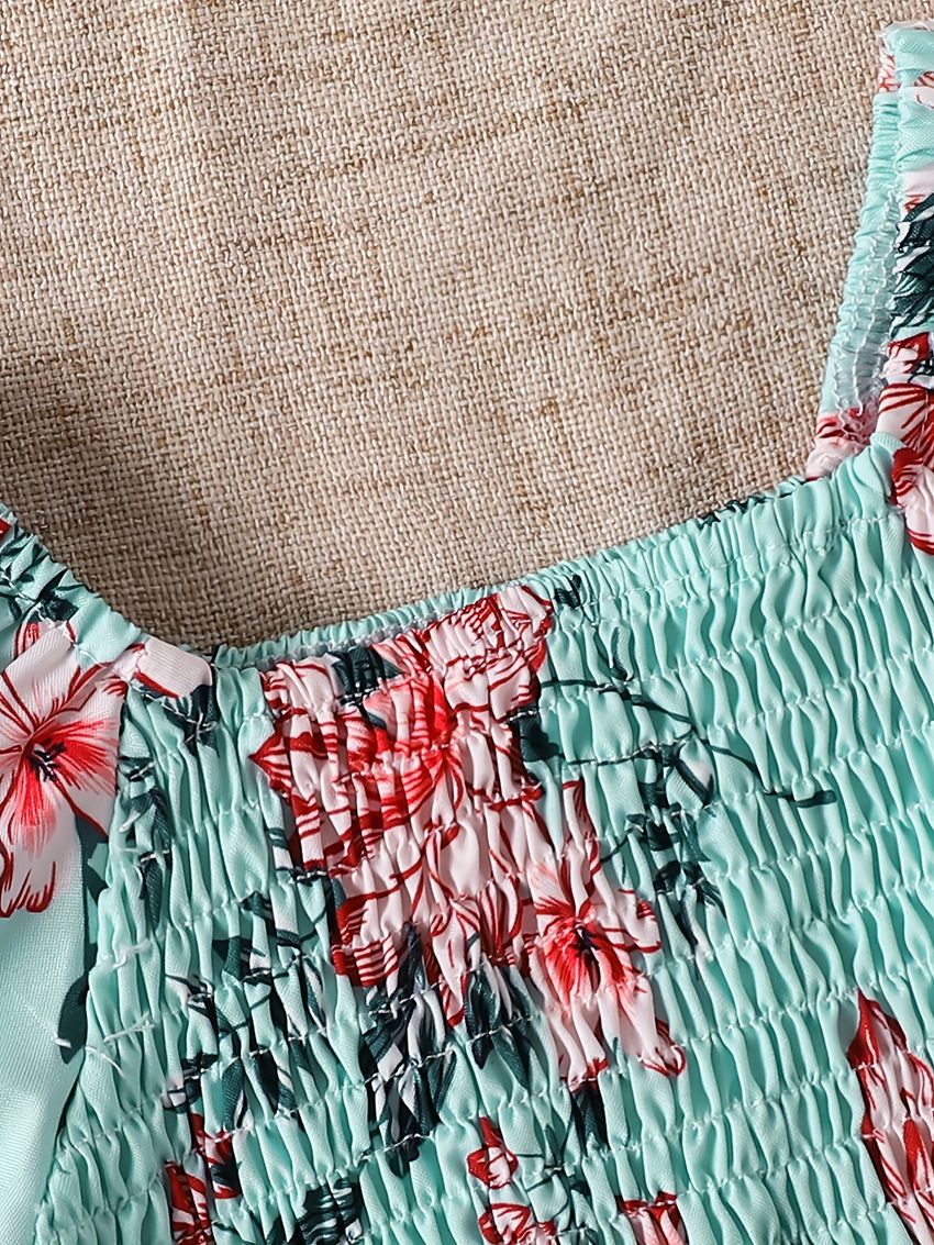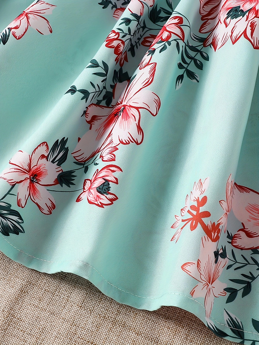 국경 간 INS 유아 및 어린 소녀 여름 스타일 퍼프 슬리브 꽃 프린트 벨트 허리 스위트 드레스