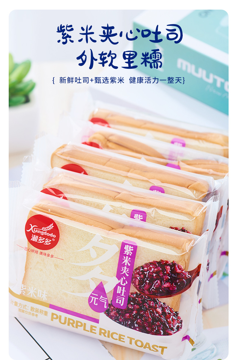 보라색 쌀 토스트 빵 아침 식사 전체 상자 식사 대체 블루베리 잼 샌드위치 케이크 스낵 건강하고 영양가 있는 스낵스토어 가기