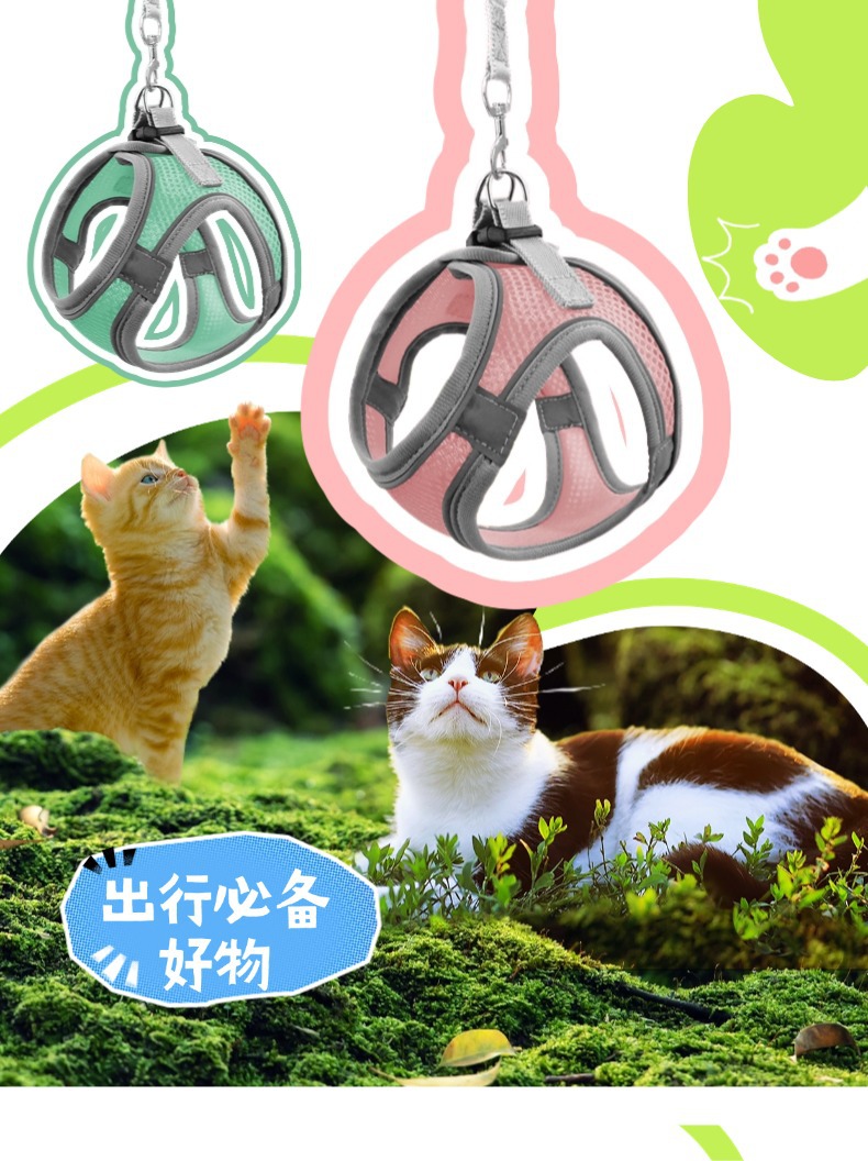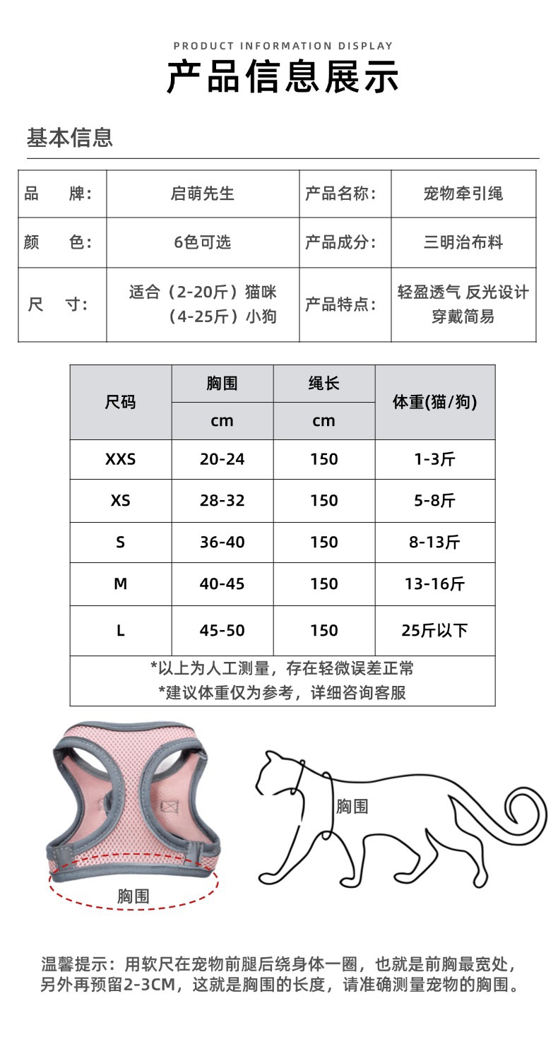 Mr. Qimeng 애완 동물 가죽 끈 고양이 가죽 끈 중소형 개 메쉬 통기성 고양이 개 조끼 하네스 맞춤형스토어 가기