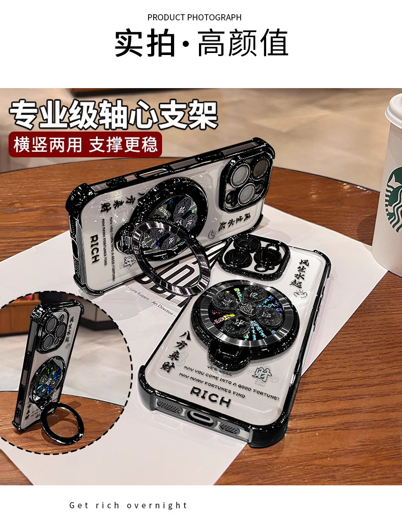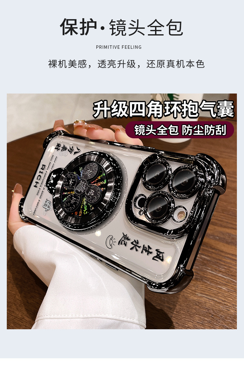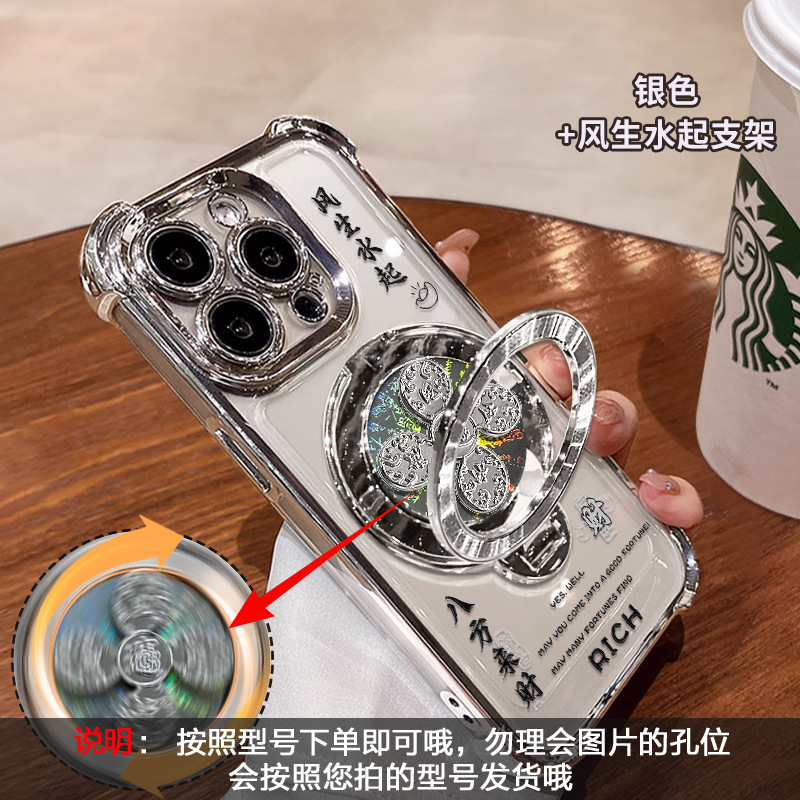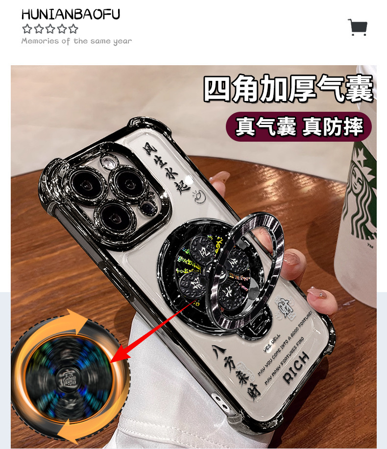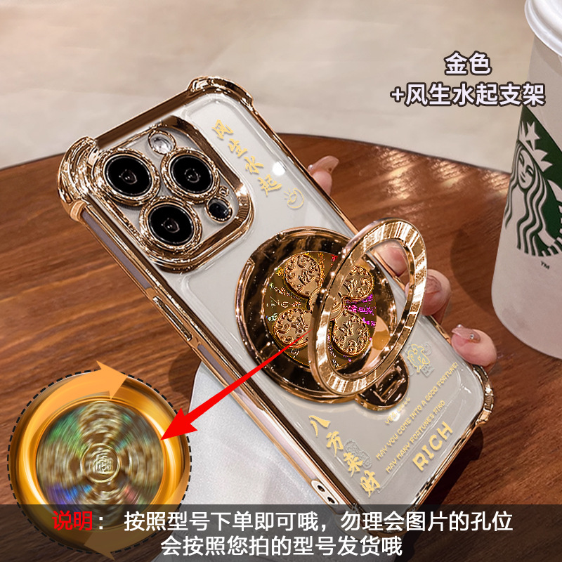 Apple 16 중국 스타일 휴대폰 케이스 13promax 투명 실리콘 15 고급 감각에 적합한 회전하는 자이로스코프 스탠드스토어 가기