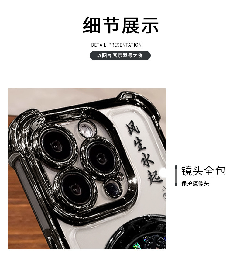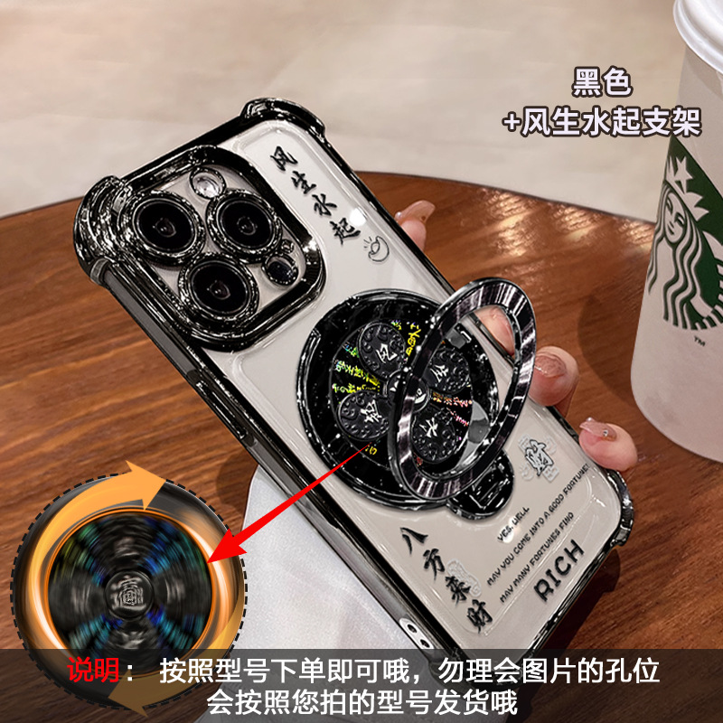 Apple 16 중국 스타일 휴대폰 케이스 13promax 투명 실리콘 15 고급 감각에 적합한 회전하는 자이로스코프 스탠드