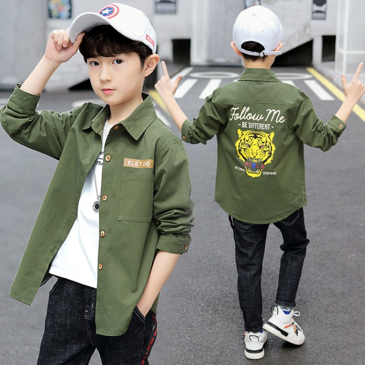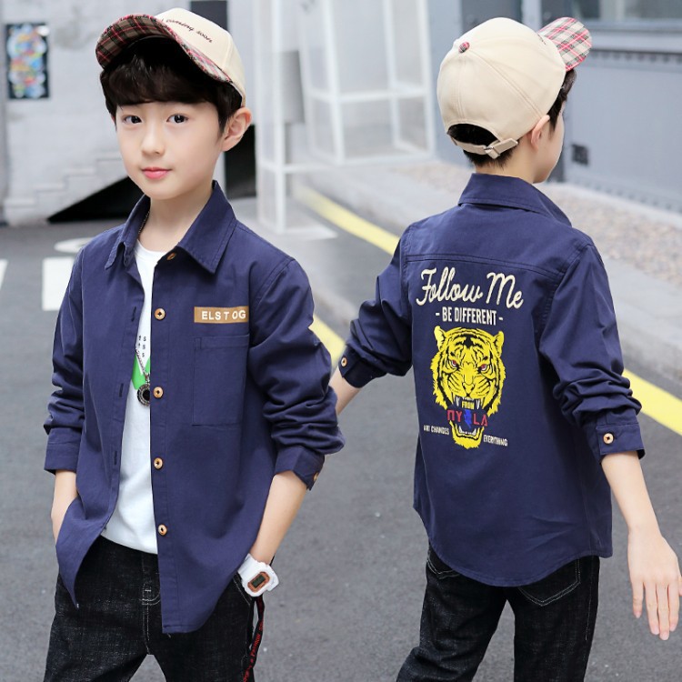 아동복 소년 봄 셔츠 캐주얼 2025 새로운 중대형 아동 셔츠 얇은 아동 한국어 버전 유행 봄, 가을 긴 소매스토어 가기