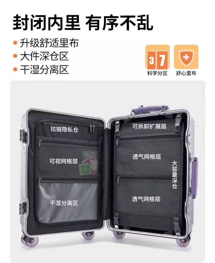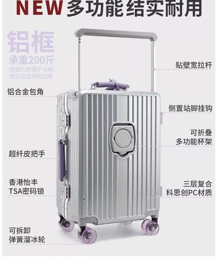 2025 여성용 새로운 와이드 트롤리 가방 20inch 탑승 케이스 무료 체크인 비밀번호 상자 26inch 여행 가방 트롤리 케이스스토어 가기