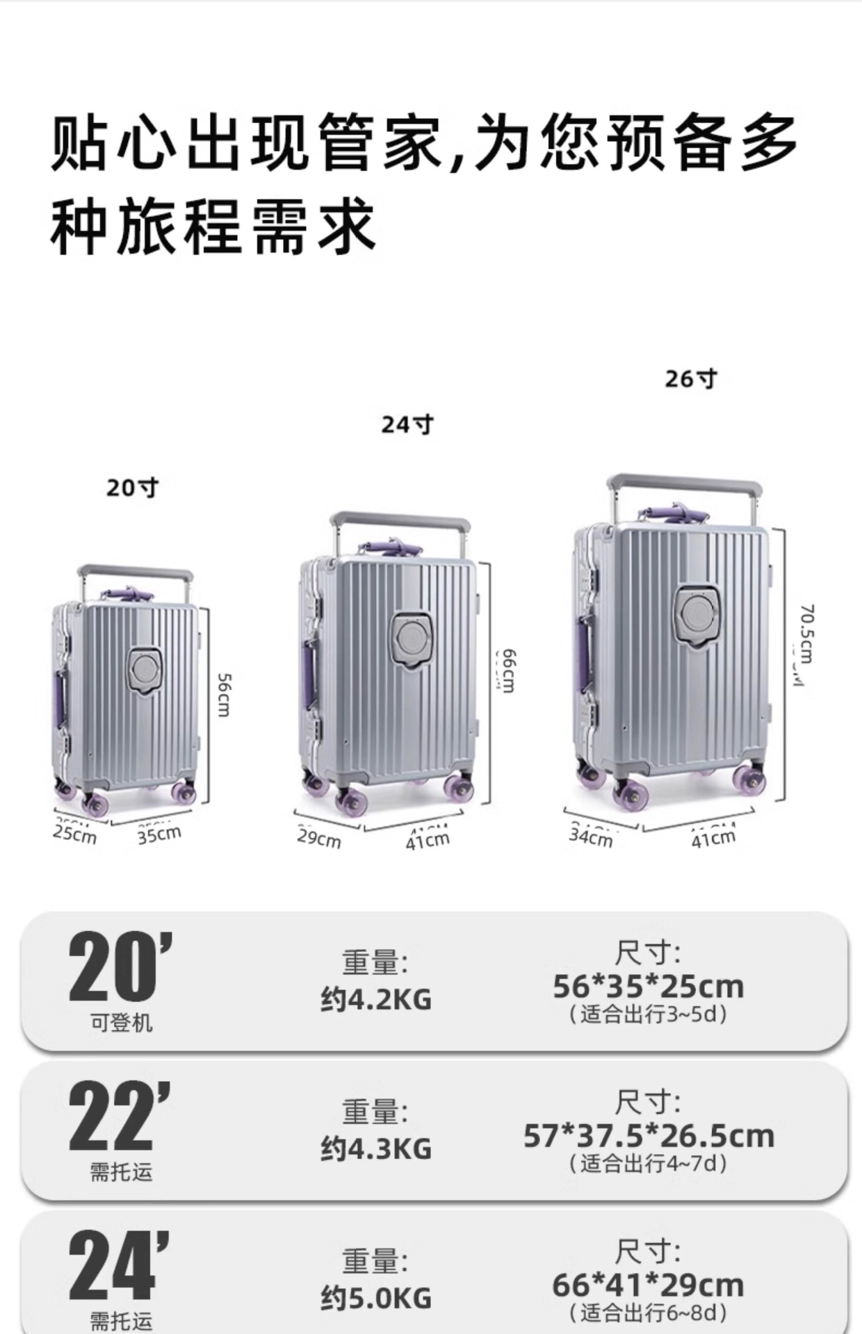 • 24inch 위탁 필요 - 약 8일 여행에 적합 - 학생 이동 인기 사이즈