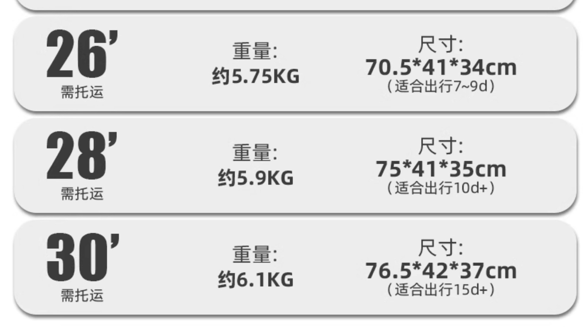 • 26inch 위탁 필요 - 약 10일 여행에 적합 - 장거리 이동하는 학생들에게 인기 있는 사이즈