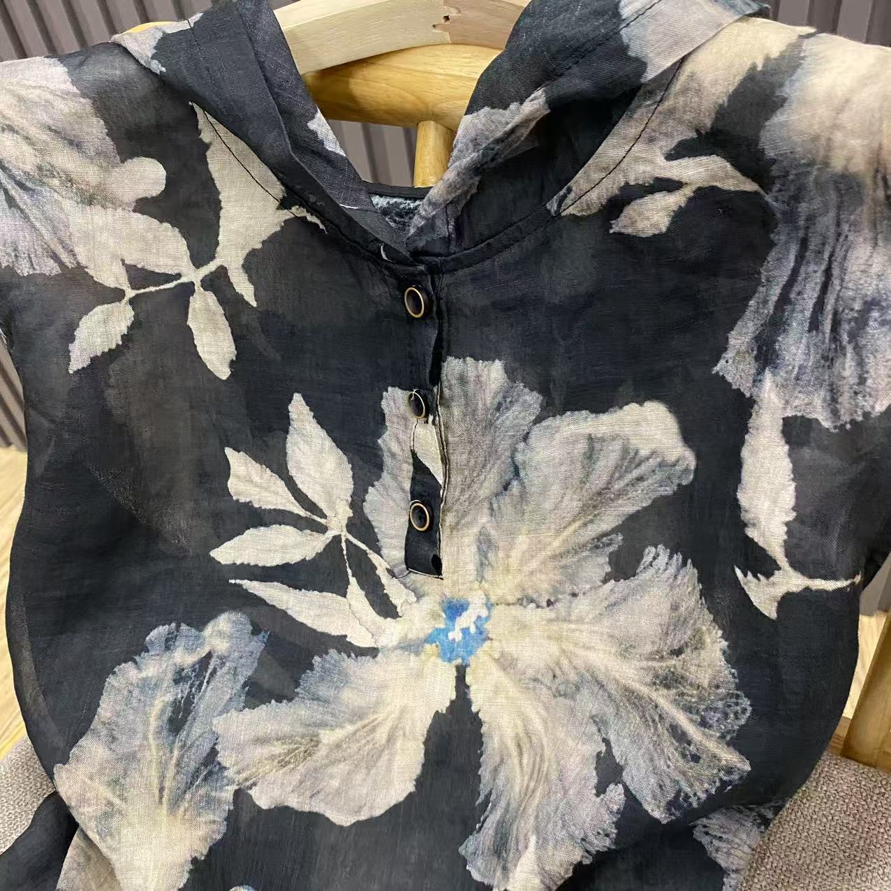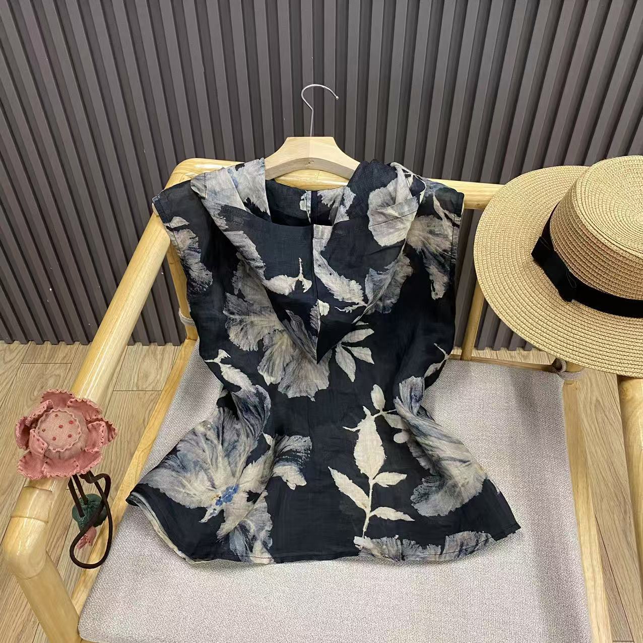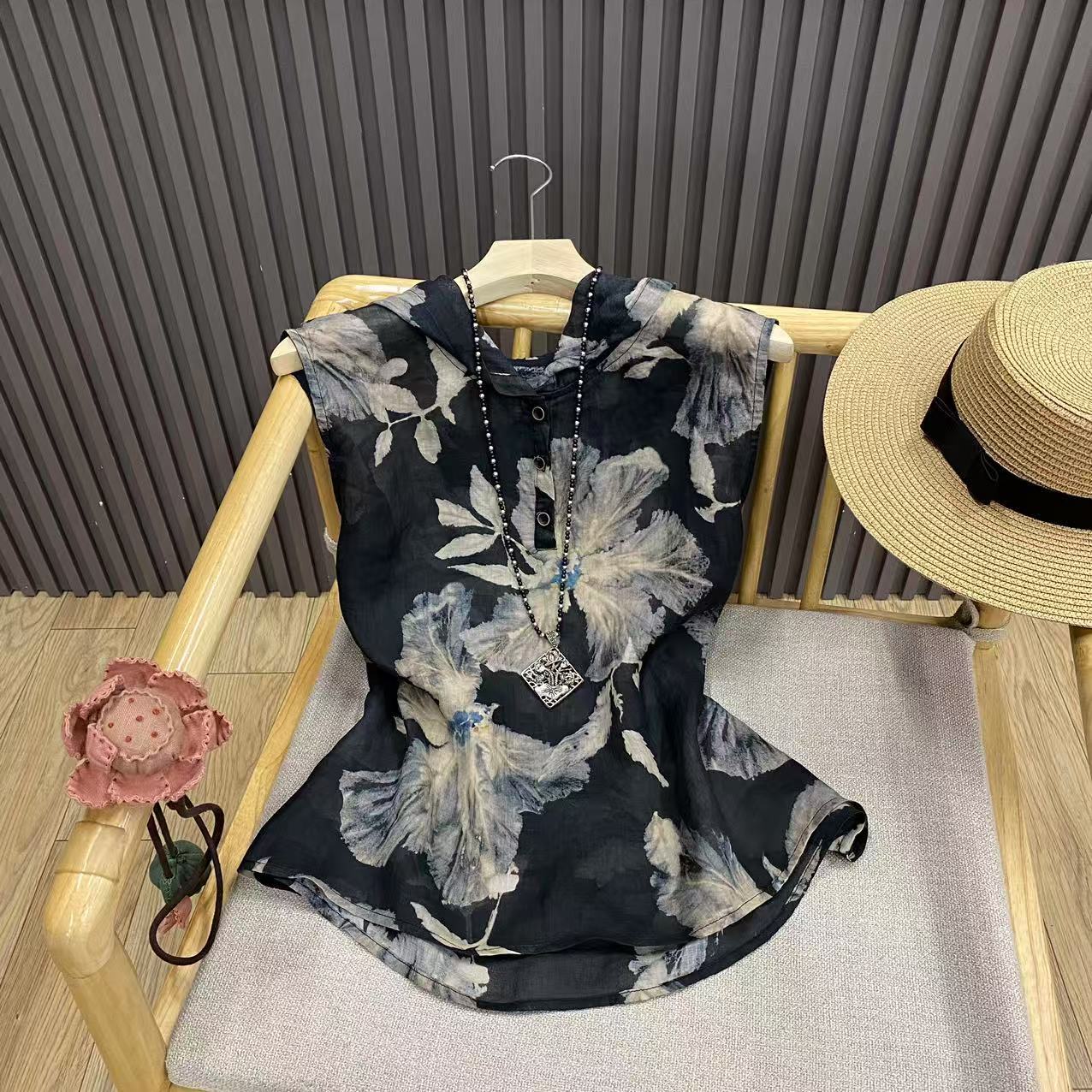 후드 모시 프린트 풀오버 민소매 조끼 루즈하고 다재다능한 복고풍 예술적 탑 여성 T88108스토어 가기
