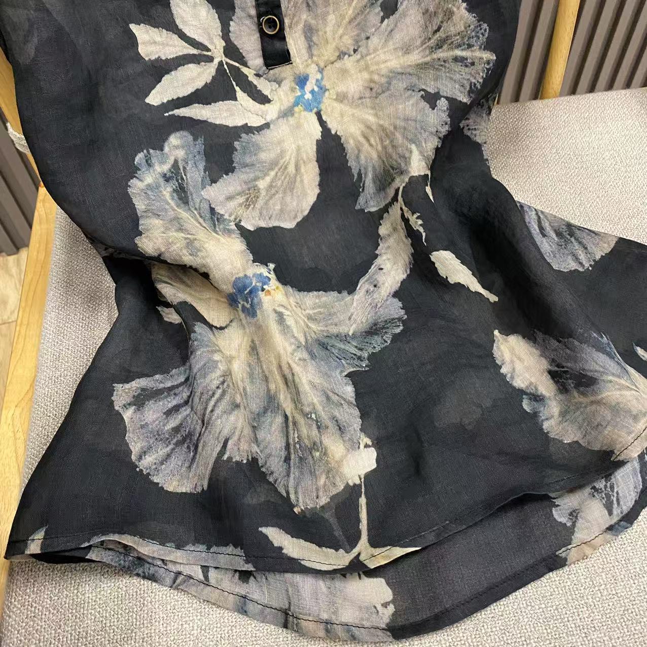 후드 모시 프린트 풀오버 민소매 조끼 루즈하고 다재다능한 복고풍 예술적 탑 여성 T88108