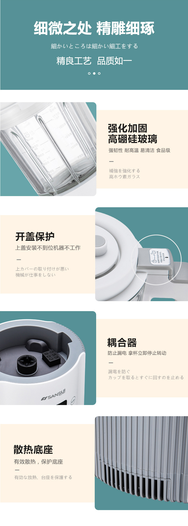 일본산 SANSUI 가정용 블렌더, 필터 없이, 콩을 담가지 않고도 사용 가능한 요리기, 두유기, 주스기