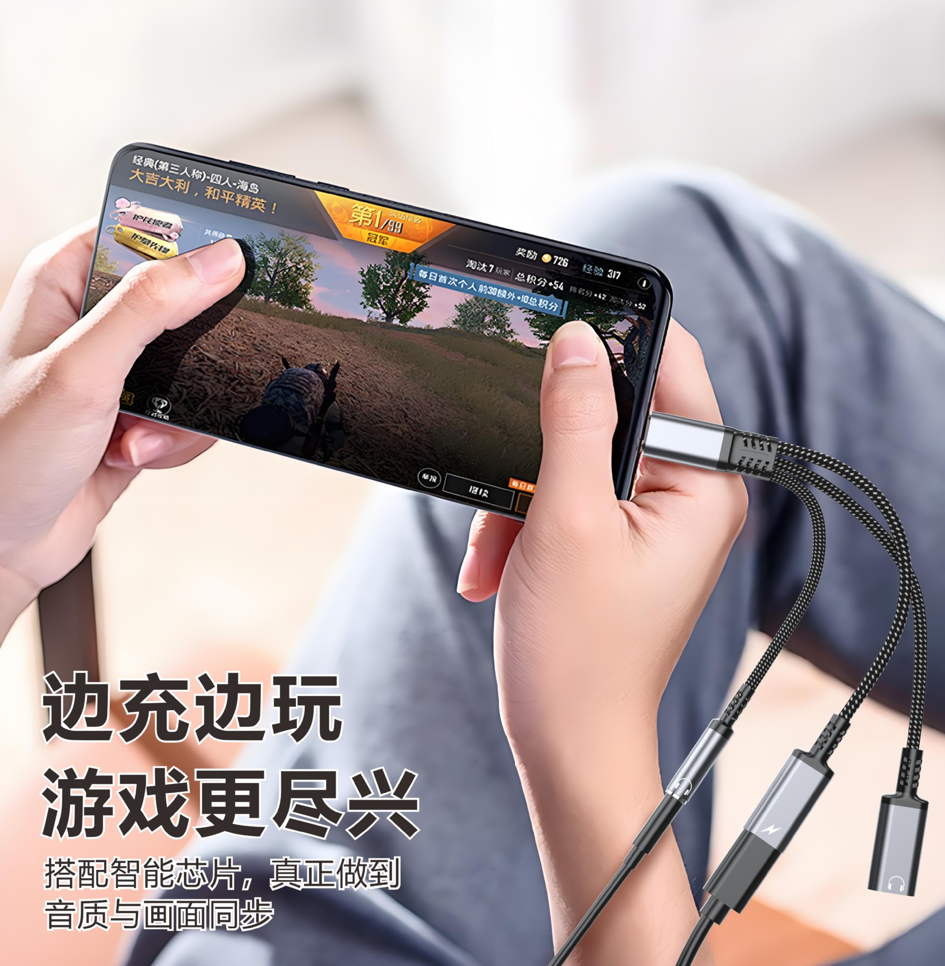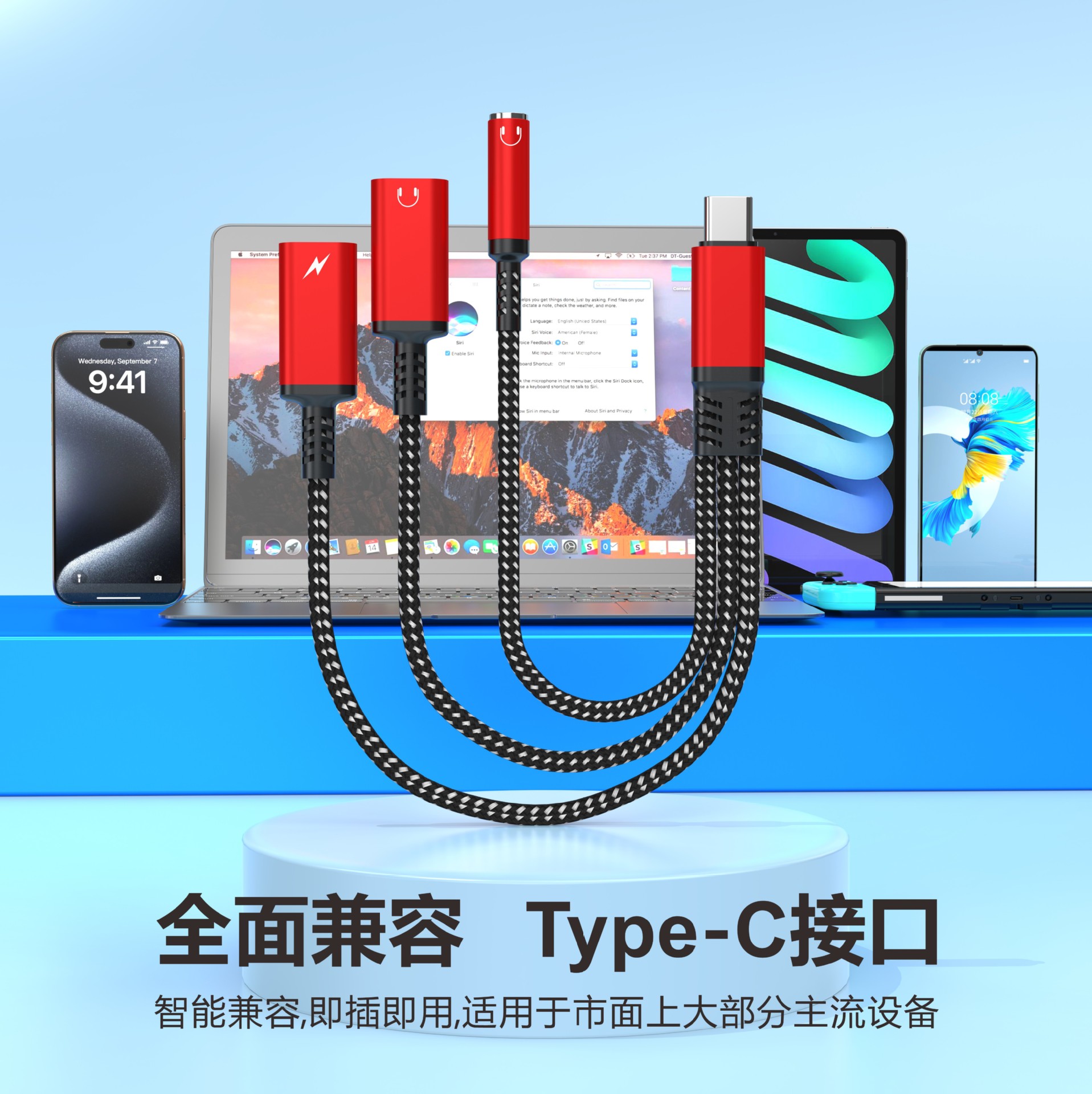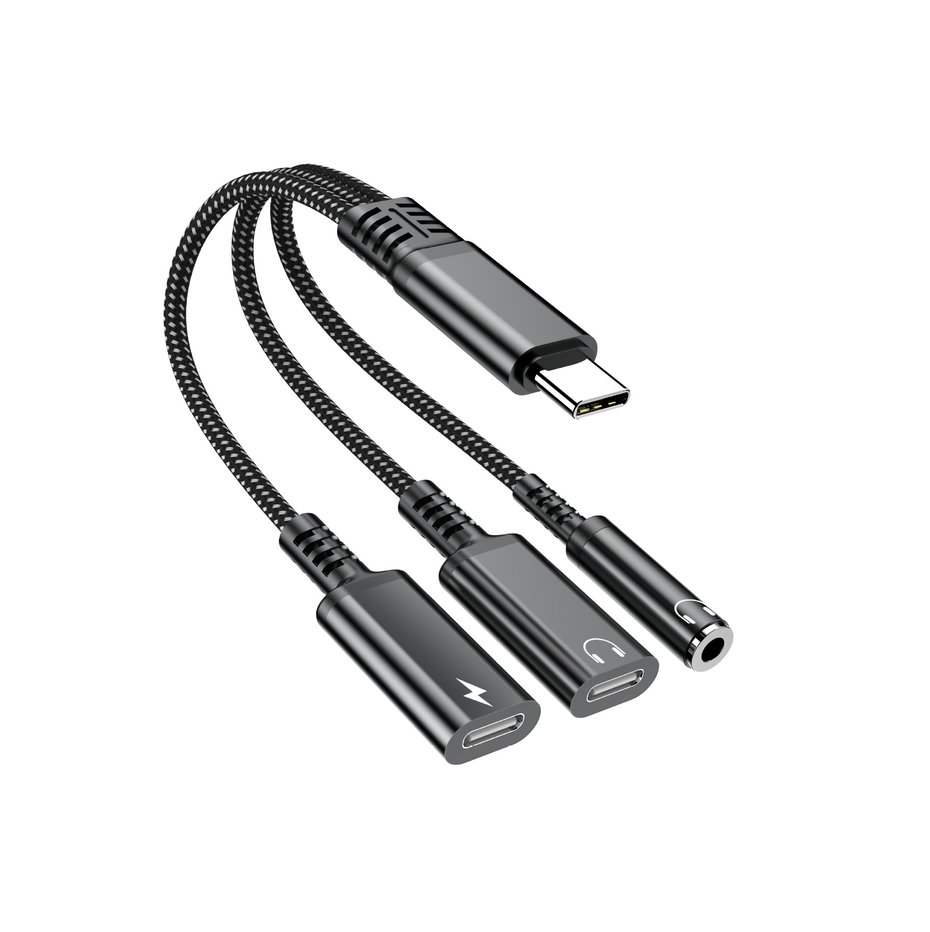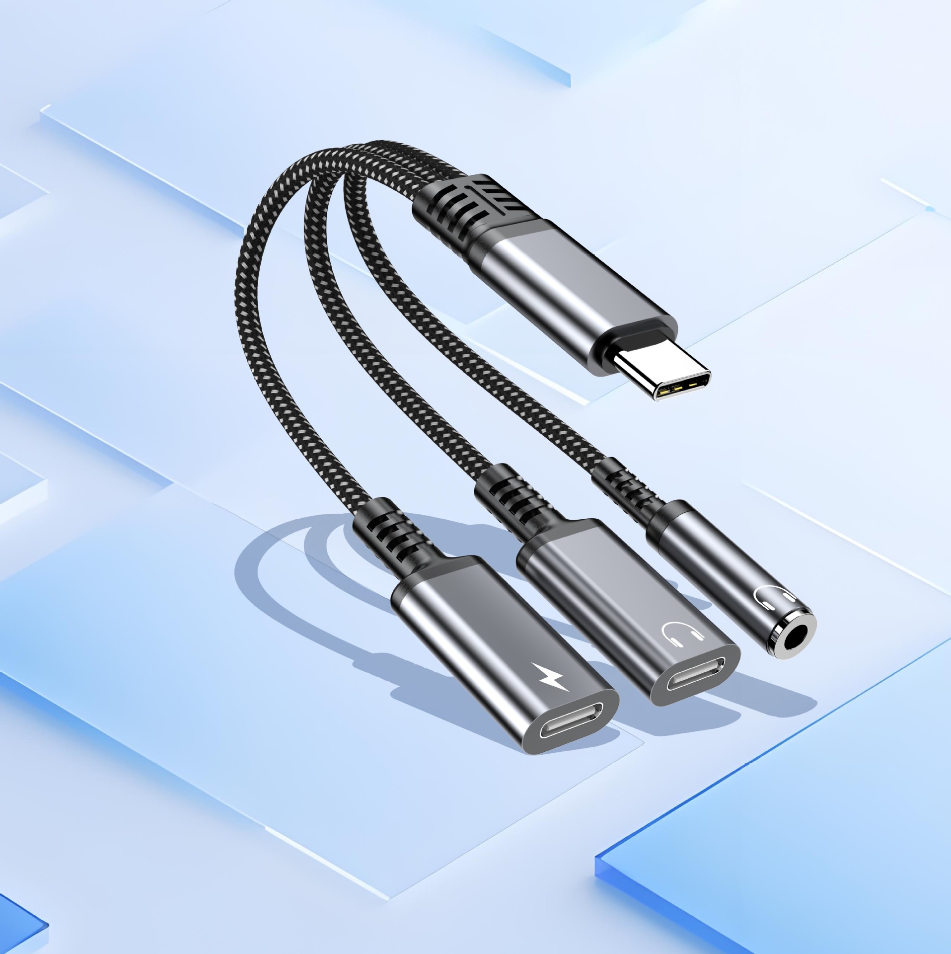 국경 간 유형-c 오디오 케이블 어댑터 유형-c ~ 3.5mm 충전 및 음악 듣기 다기능 변환기 3-in-one스토어 가기