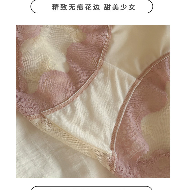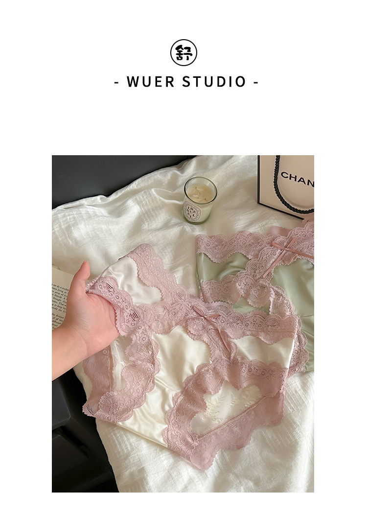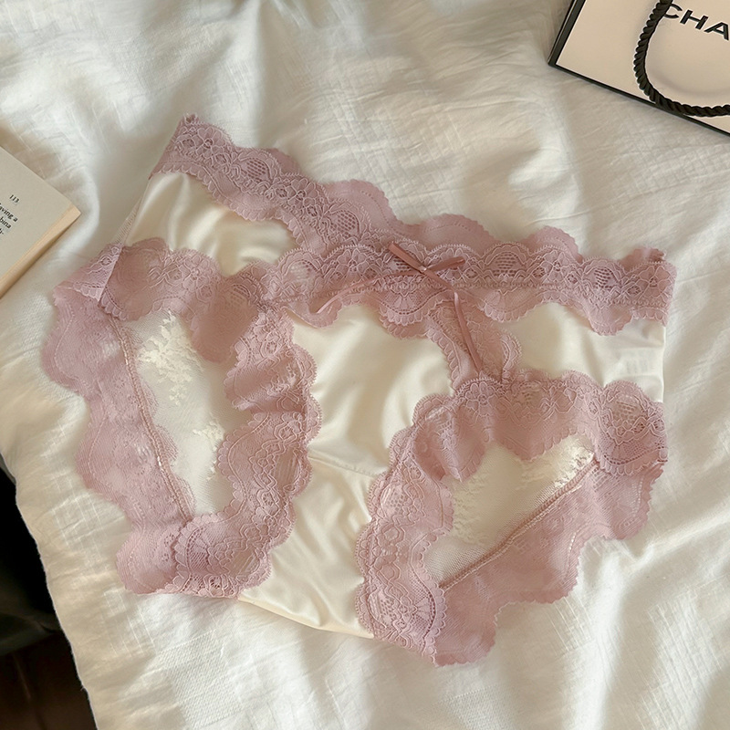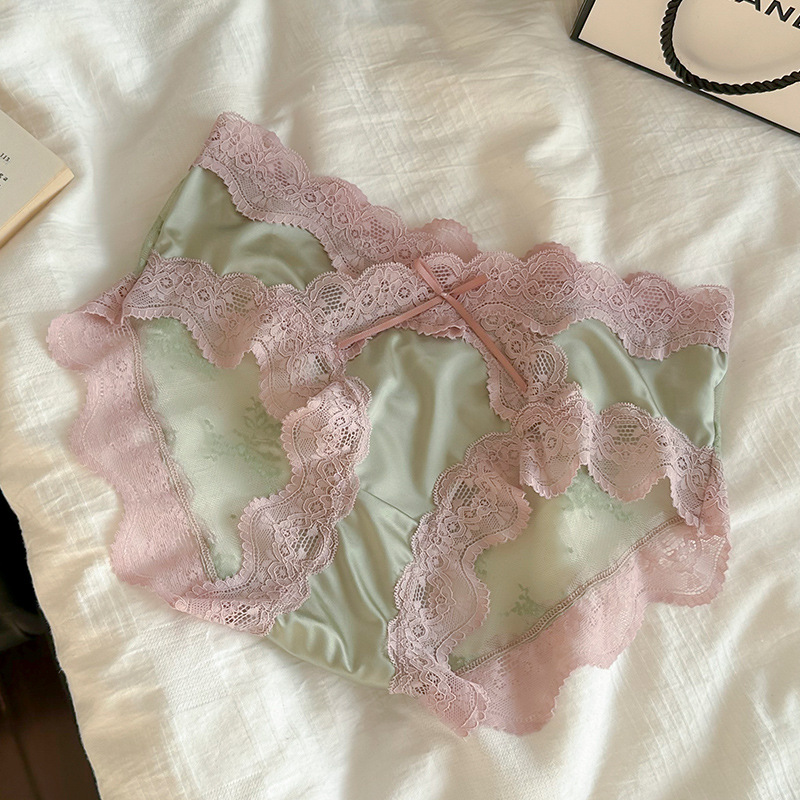 2025 새로운 달콤한 로맨틱 레이스 팬티 여성 순수 코튼 가랑이 편안한 얼음 실크 팬티 달콤한 팬티