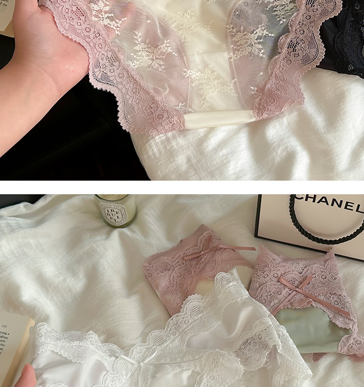 2025 새로운 달콤한 로맨틱 레이스 팬티 여성 순수 코튼 가랑이 편안한 얼음 실크 팬티 달콤한 팬티스토어 가기