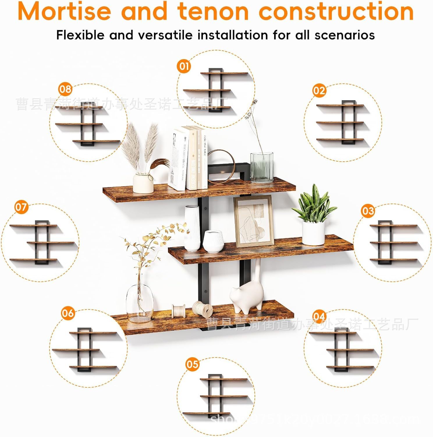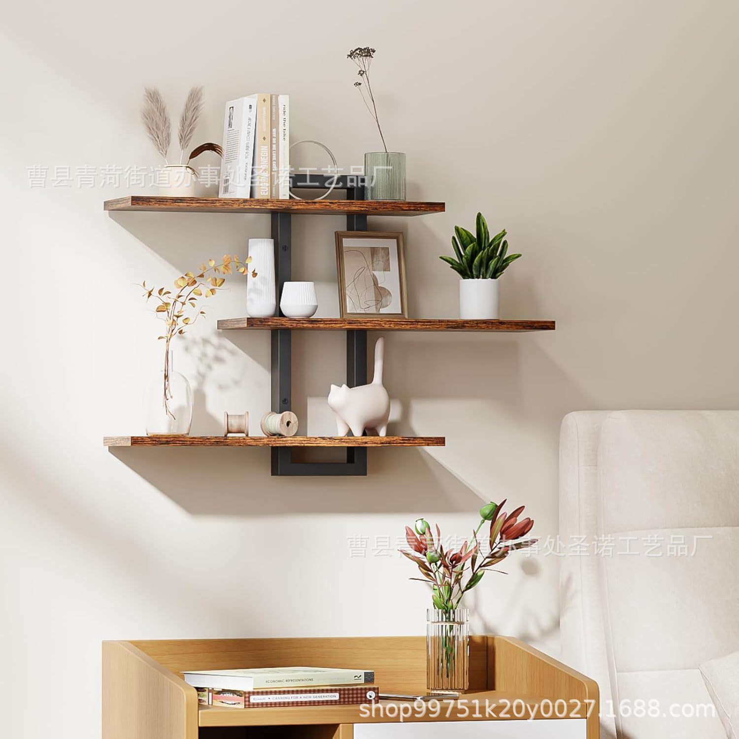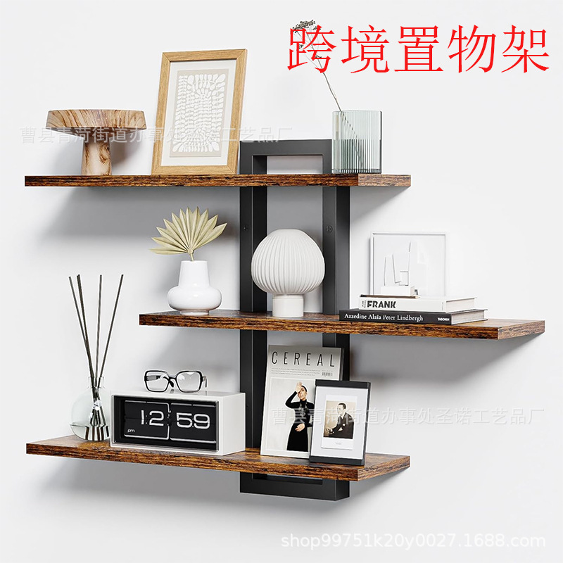 국경 간 나무 벽 플로팅 선반 욕실 나무 선반 벽 장식 3 계층 선반 스토리지 랙 단어 보드 책장