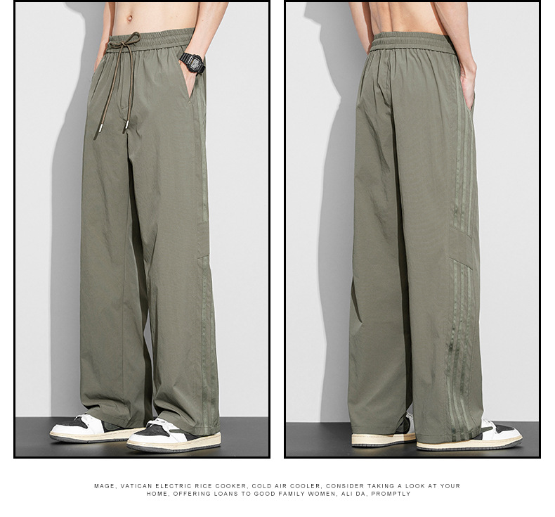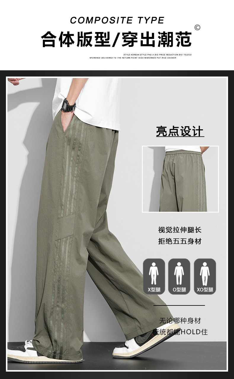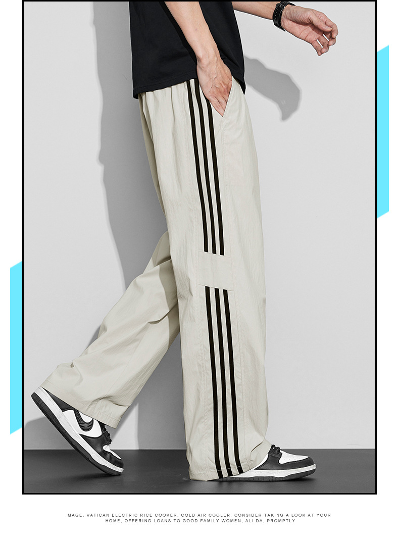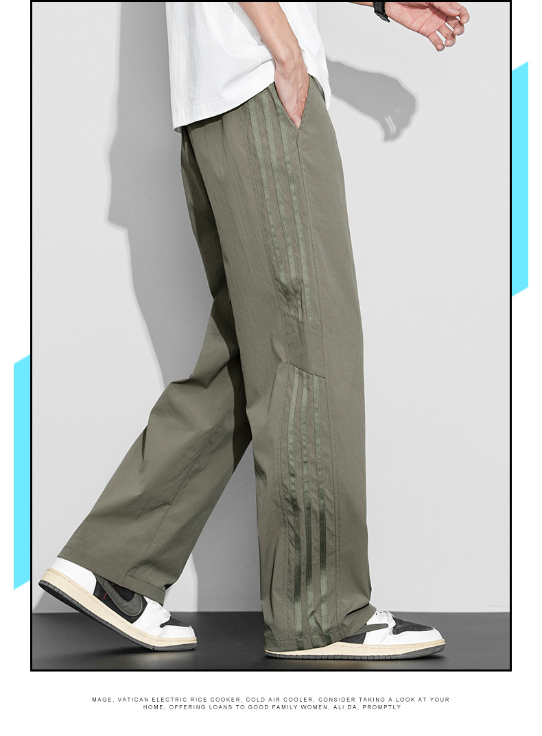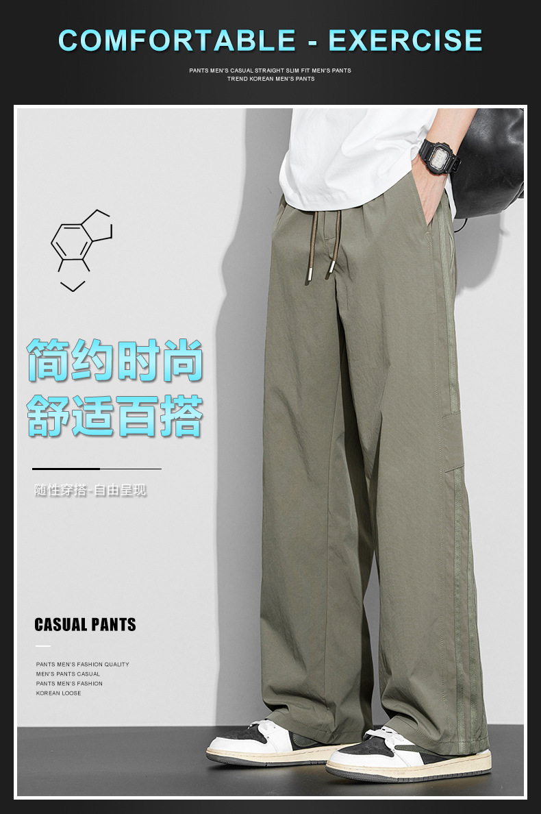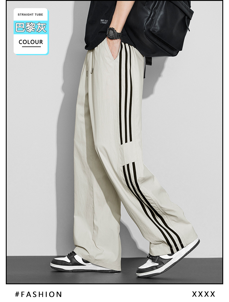 아이스 실크 캐주얼 바지 남성 2025 새로운 스트레이트 바지 여름 느슨한 얇은 줄무늬 야외 등산 바지 남성