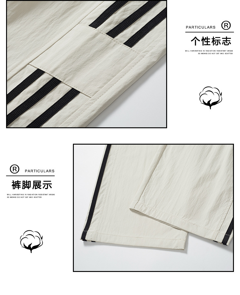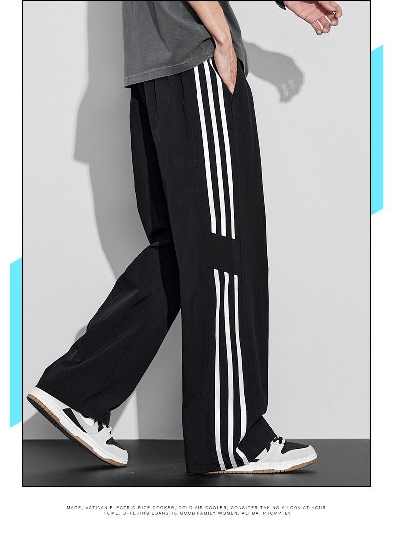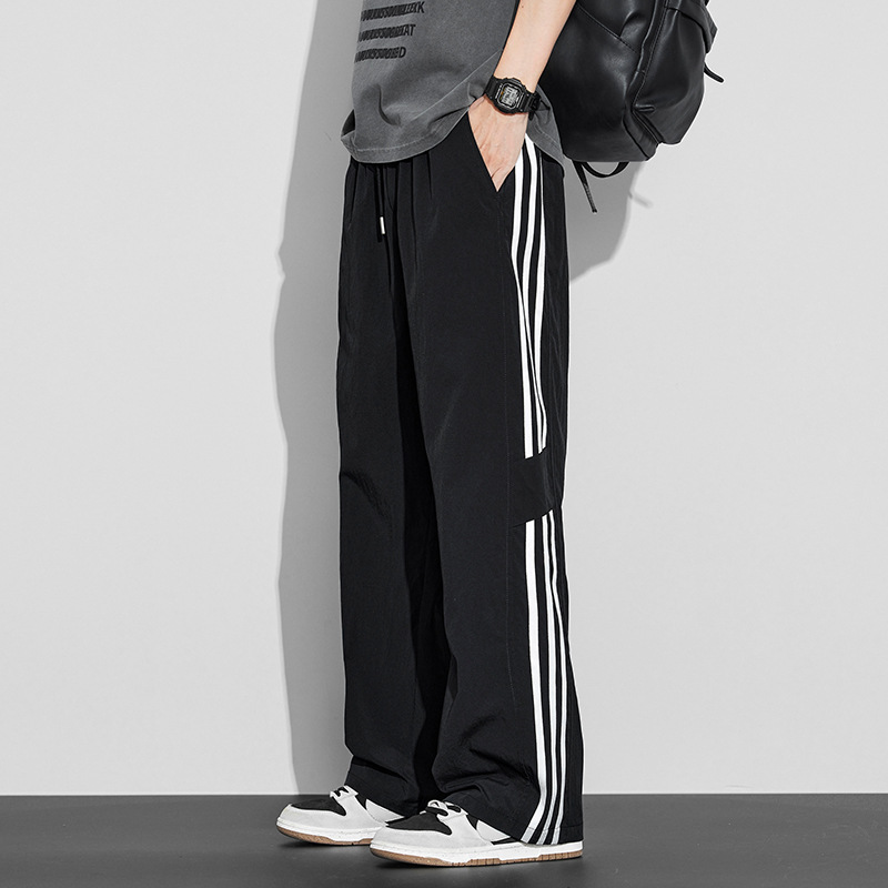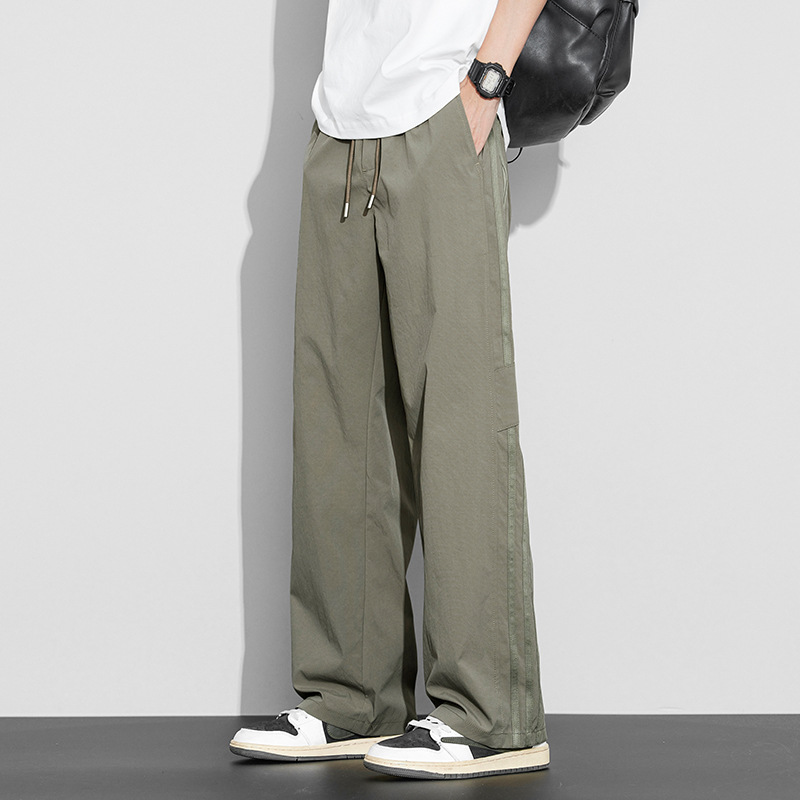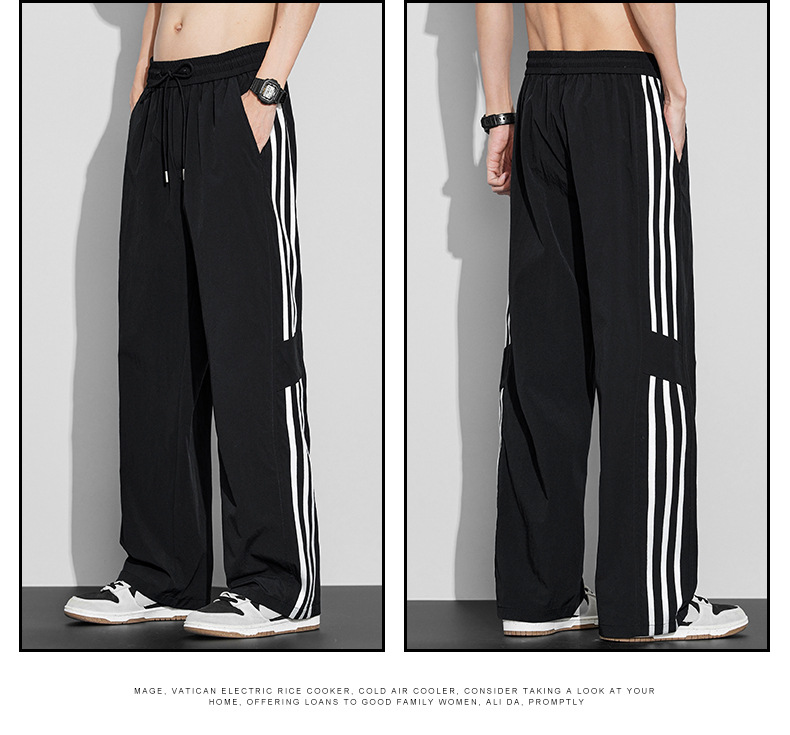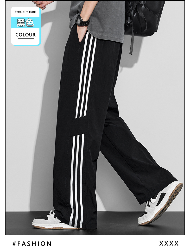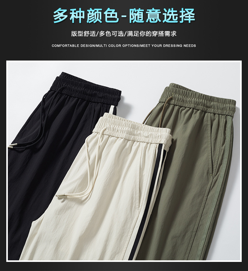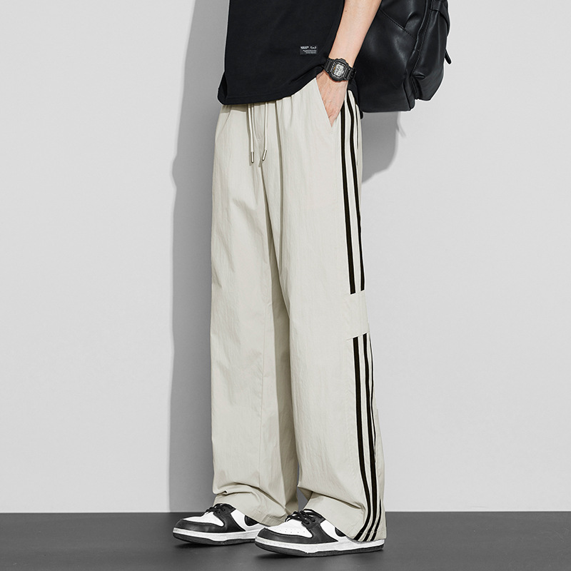 아이스 실크 캐주얼 바지 남성 2025 새로운 스트레이트 바지 여름 느슨한 얇은 줄무늬 야외 등산 바지 남성