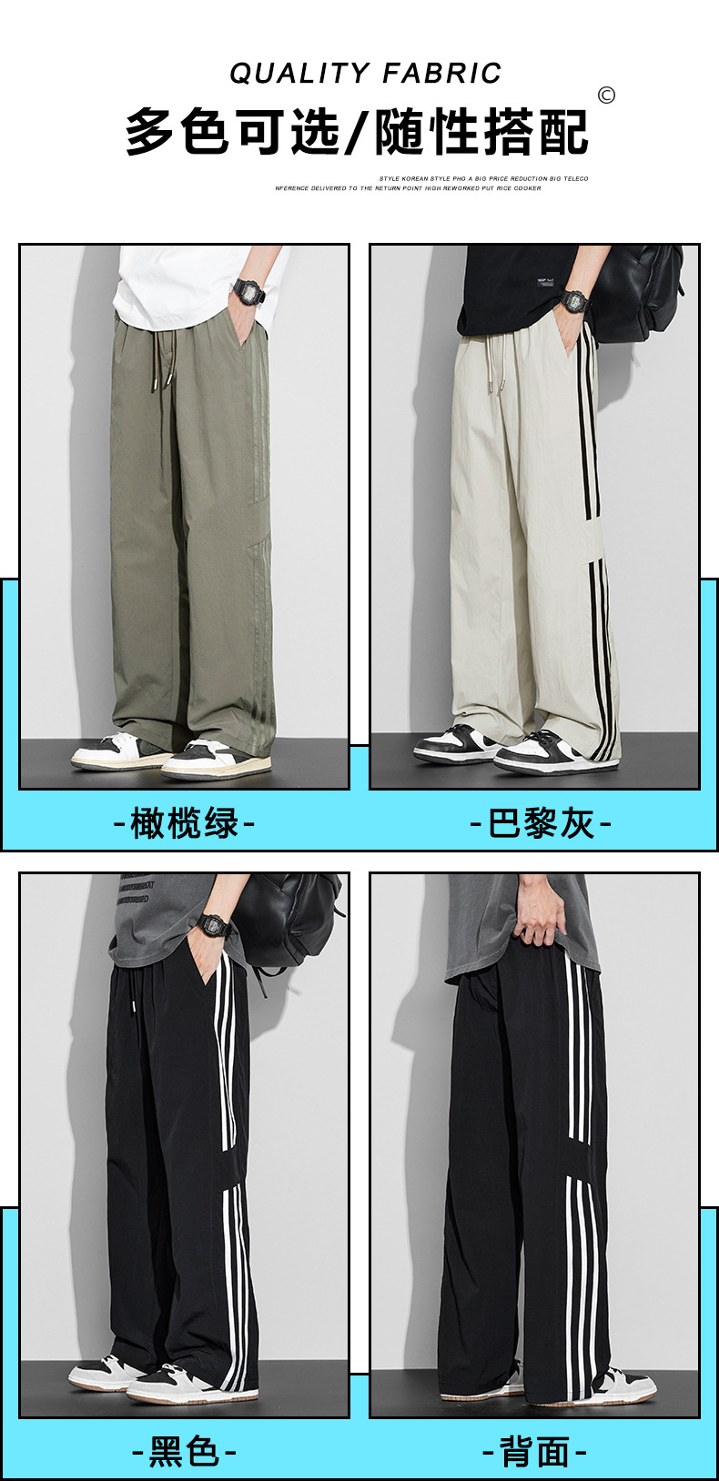 아이스 실크 캐주얼 바지 남성 2025 새로운 스트레이트 바지 여름 느슨한 얇은 줄무늬 야외 등산 바지 남성스토어 가기
