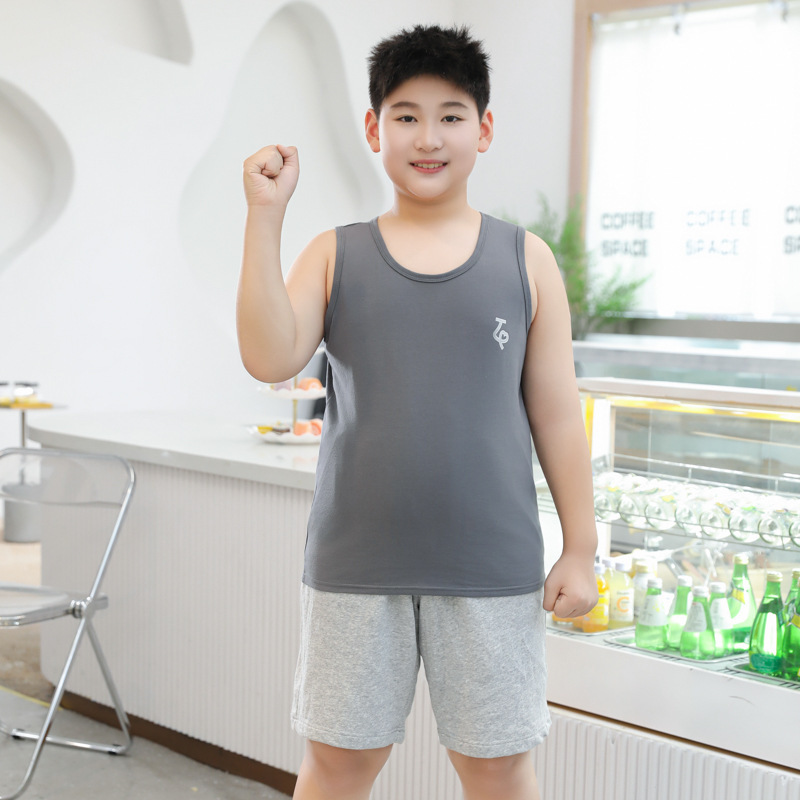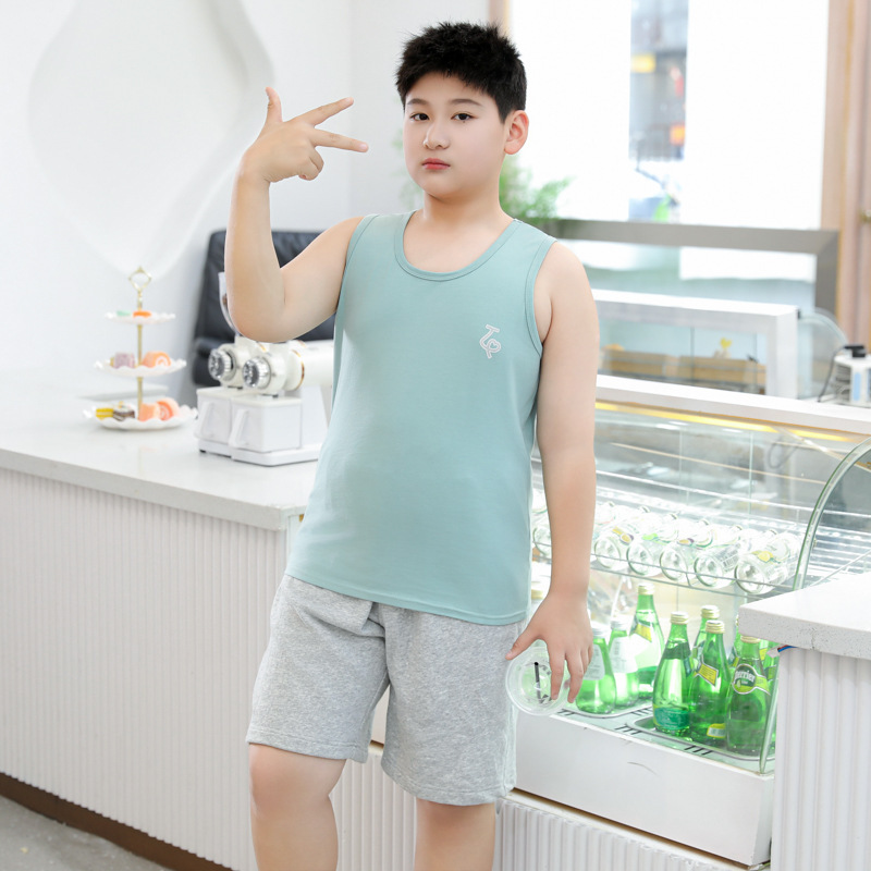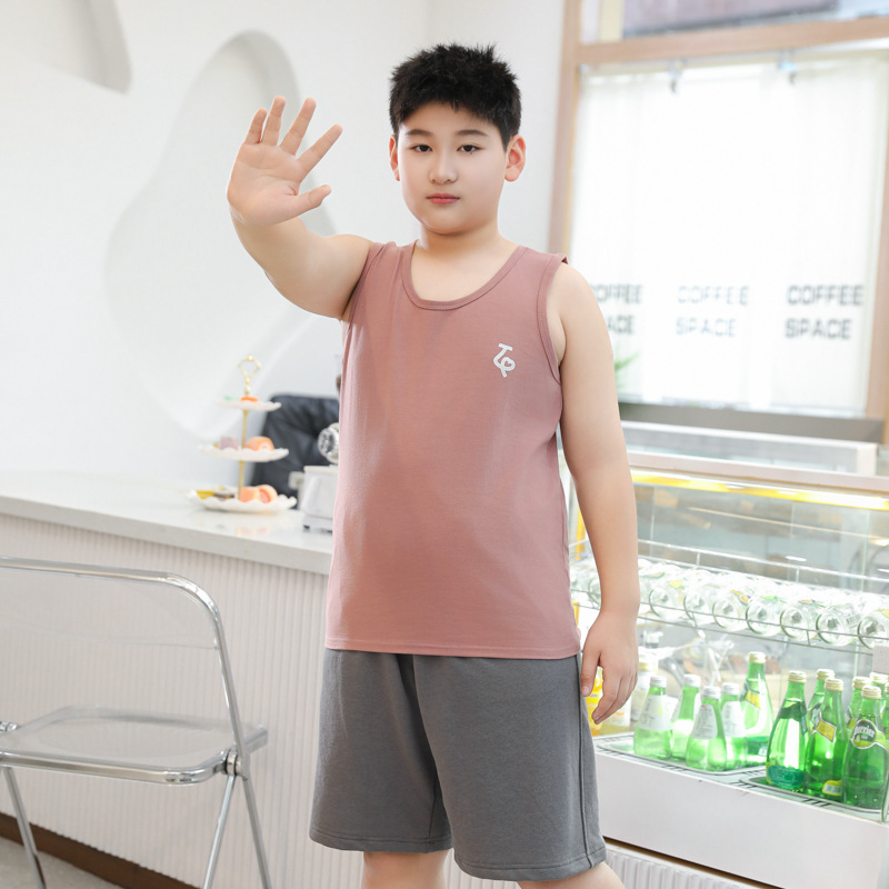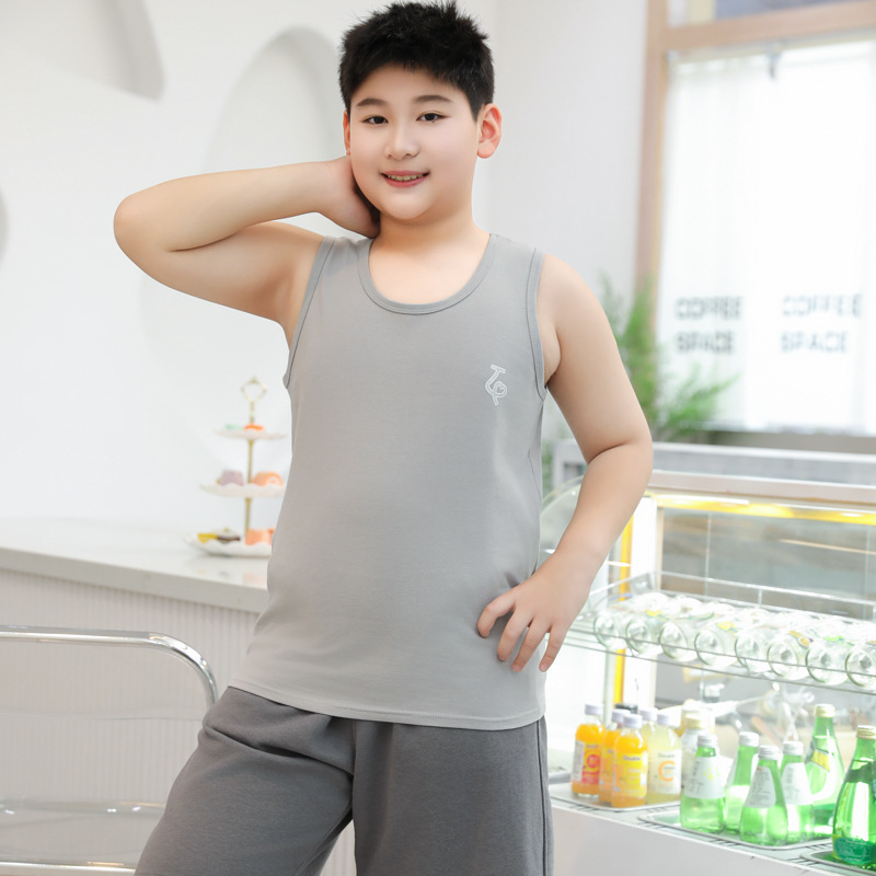 여름 남아용 순면 조끼 얇은 스타일 아동용 루즈핏 이너웨어 남아용 넓고 큰 사이즈 중대형 아동용 민소매 상의
