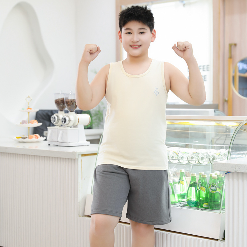 여름 남아용 순면 조끼 얇은 스타일 아동용 루즈핏 이너웨어 남아용 넓고 큰 사이즈 중대형 아동용 민소매 상의스토어 가기
