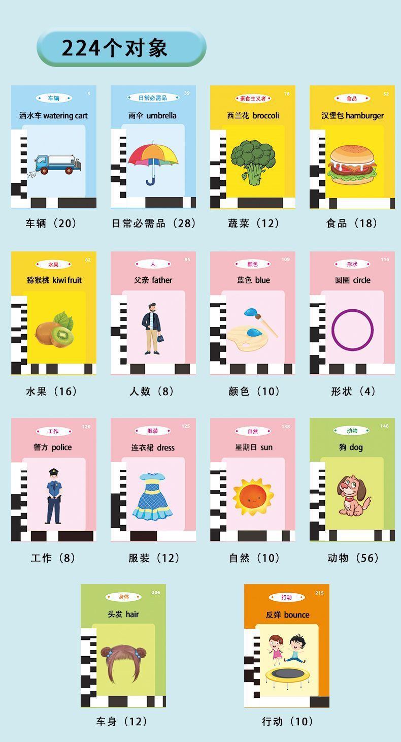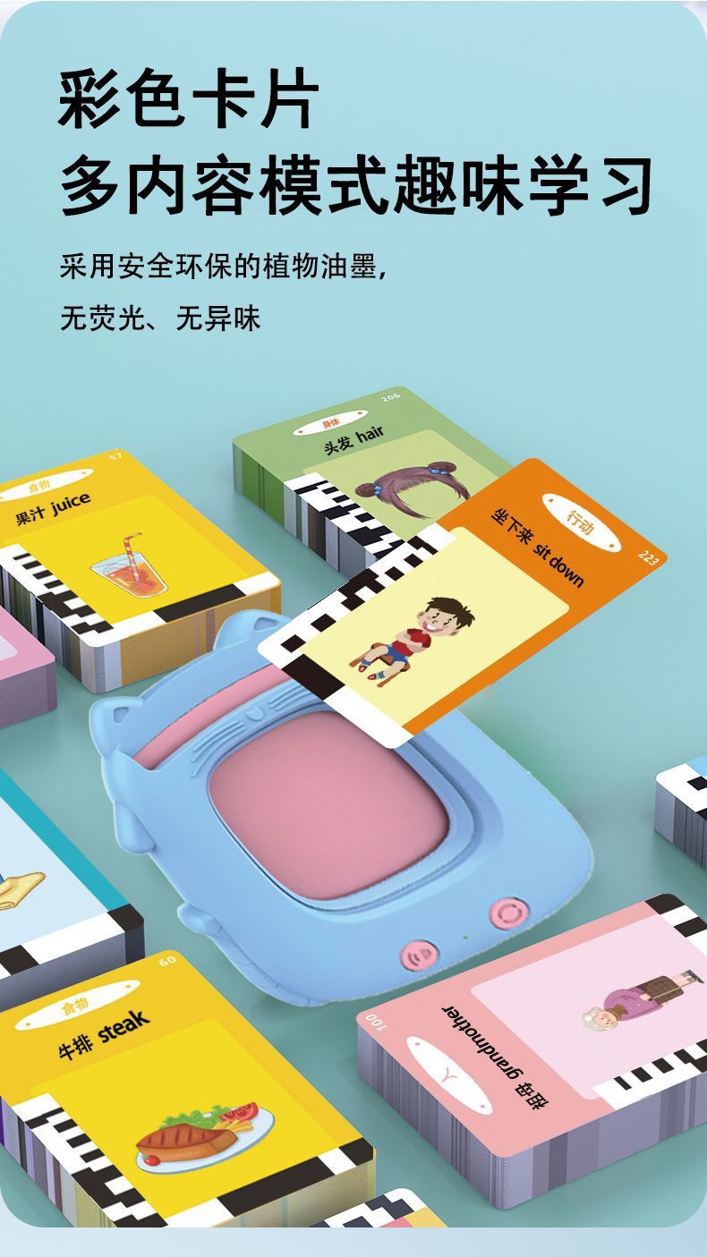 어린이 유아용 중국어-영어 교육 카드 머신, 이중 언어 오디오 학습 교육 장난감 카드스토어 가기