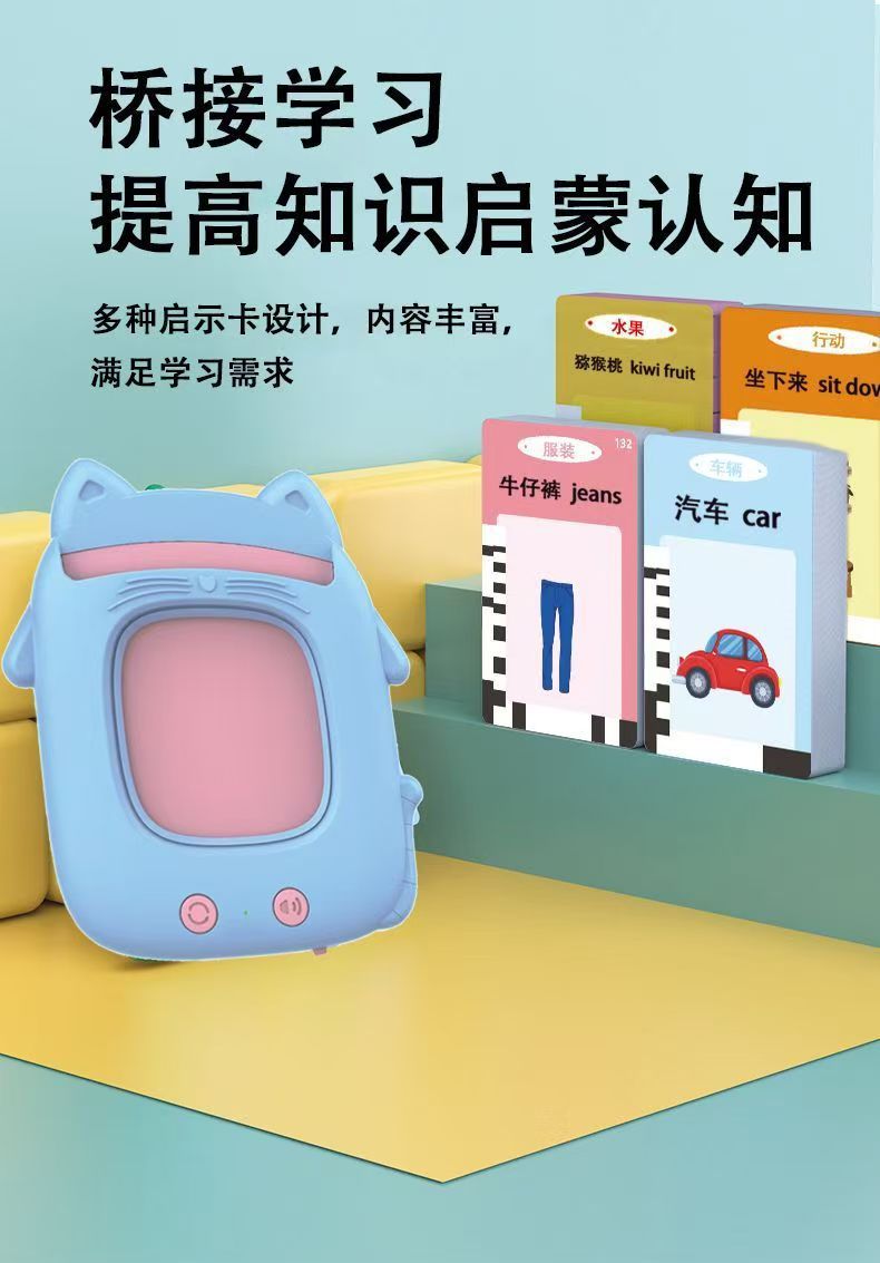 어린이 유아용 중국어-영어 교육 카드 머신, 이중 언어 오디오 학습 교육 장난감 카드