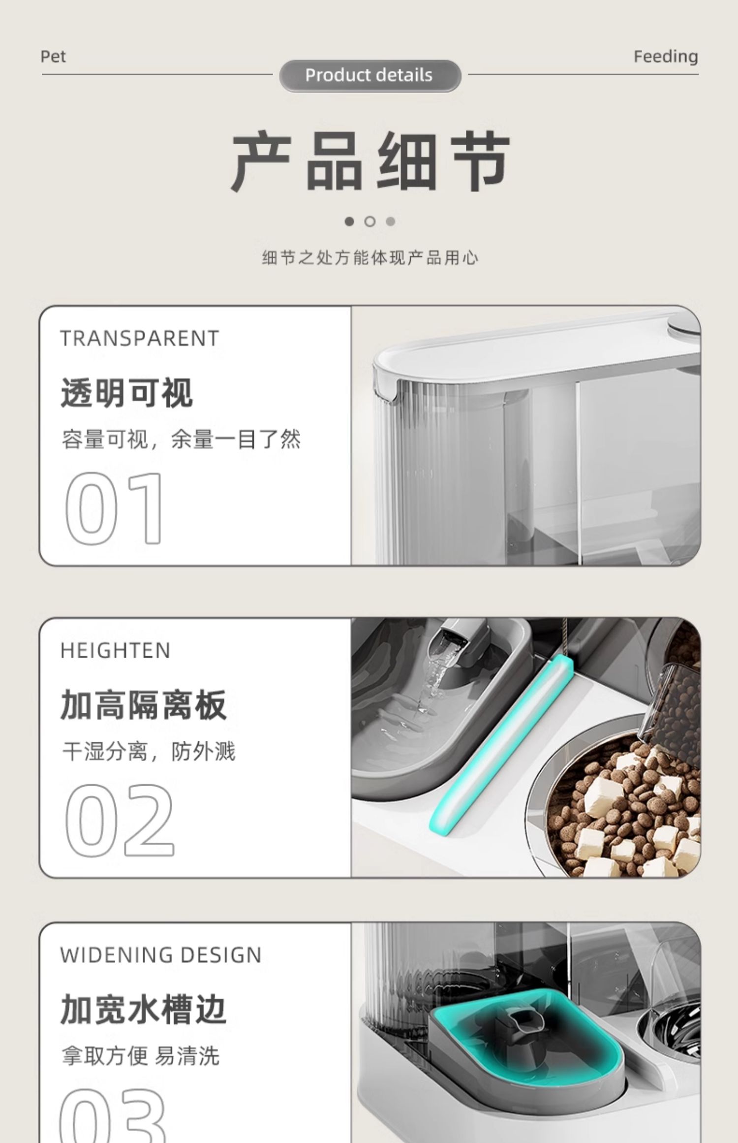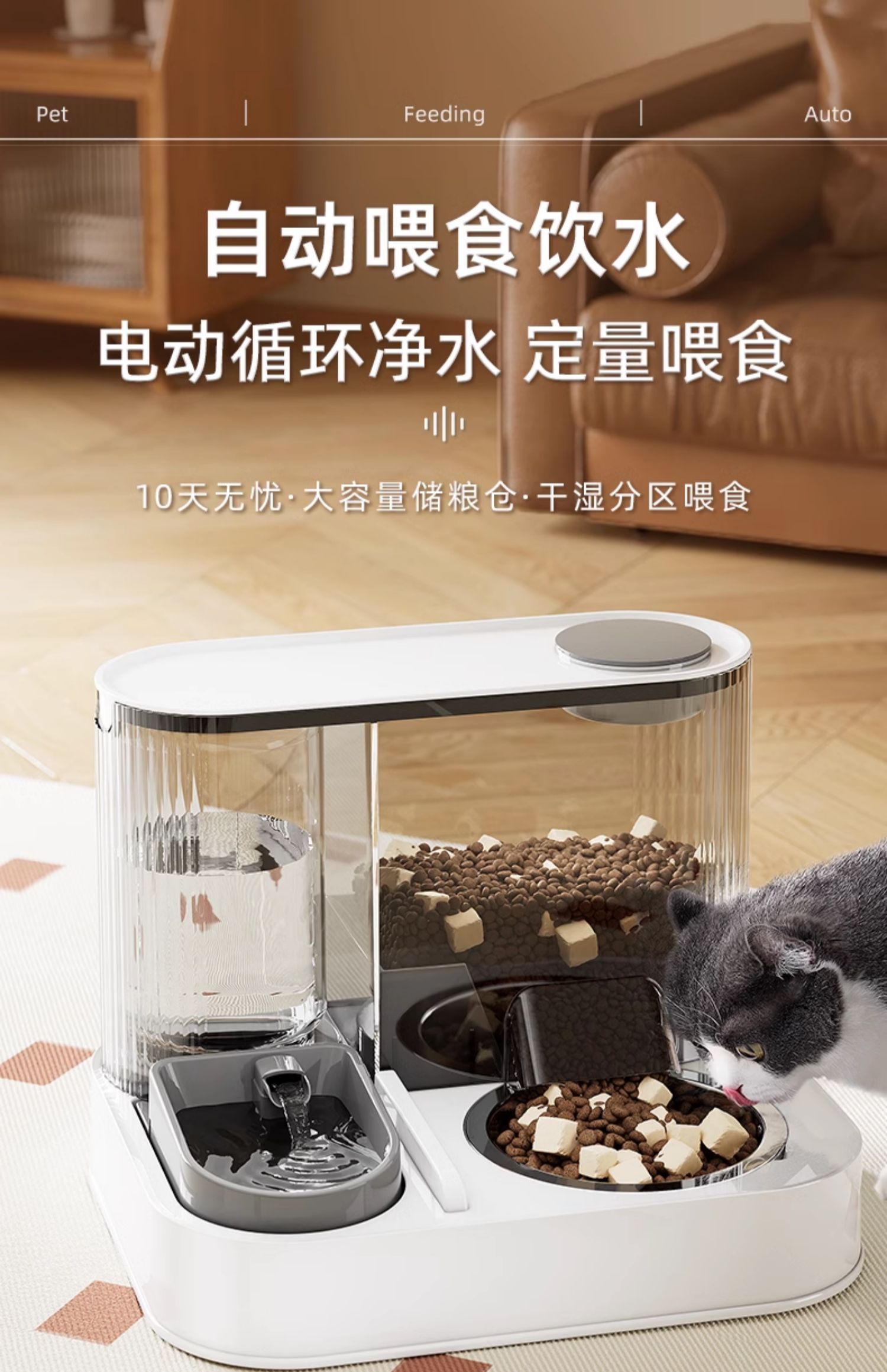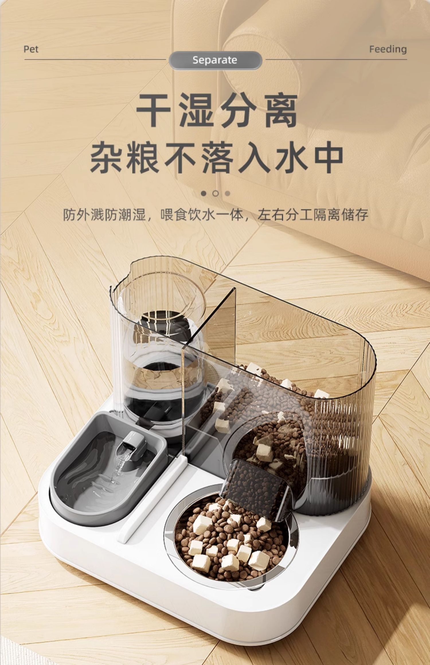 고양이 물 디스펜서, 고양이 사료 자동 급식기, 식수 일체형, 플러그 아웃 고양이 사료 그릇, 개 사료 그릇, 식수 더블 그릇