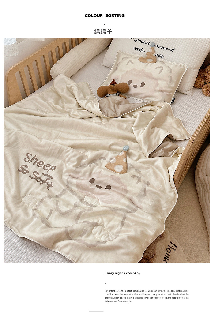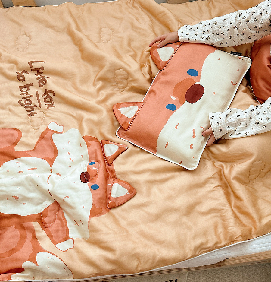 py60 카운트 텐셀 여름 시원한 이불 에어컨 이불 더블 여름 이불 4피스 아이스 실크 어린이 얇은 이불 싱글 여름