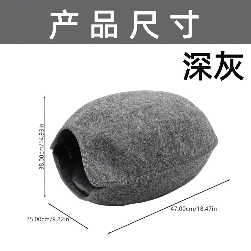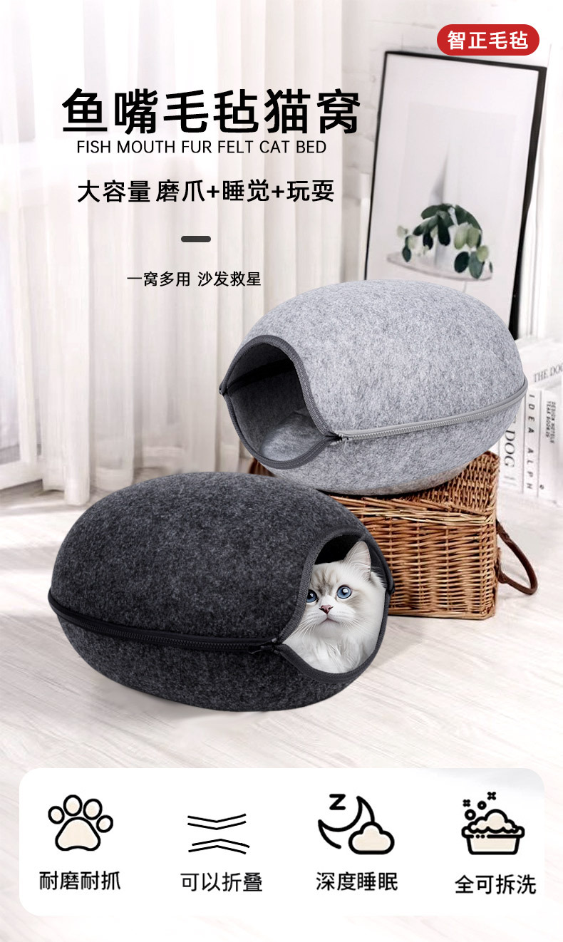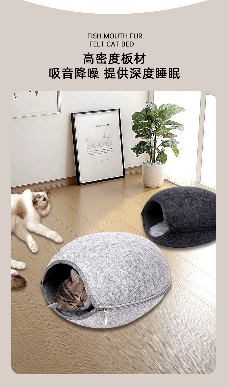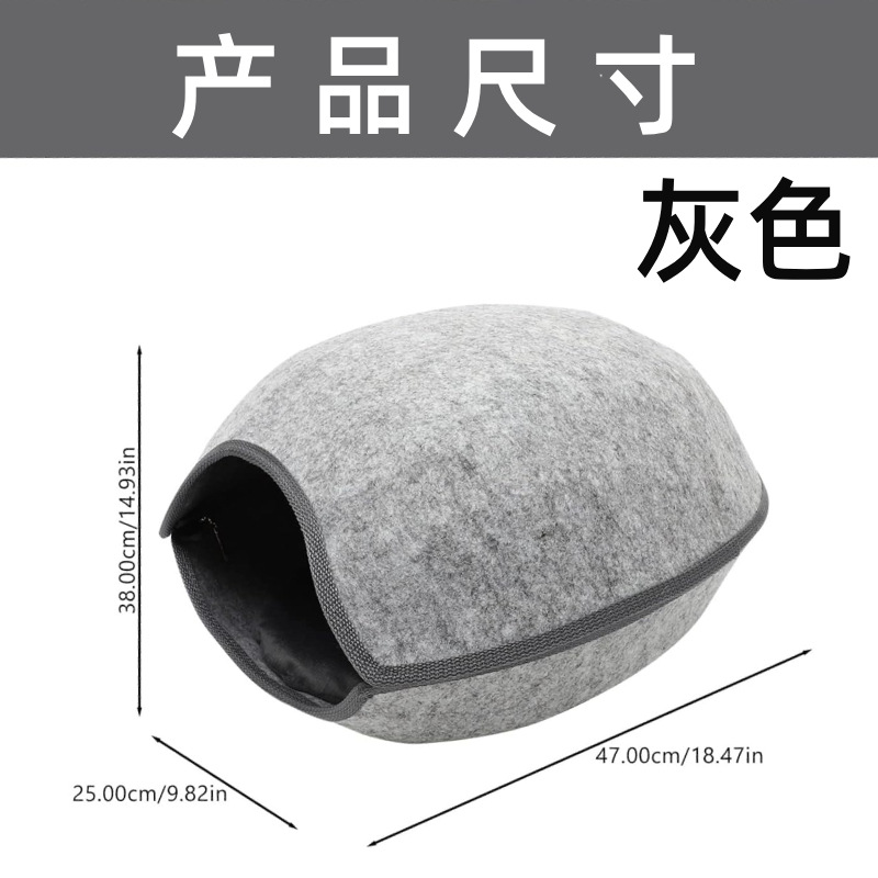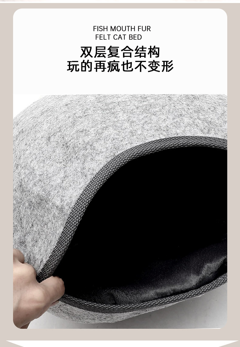 국경을 넘나드는 물고기 입 모양의 펠트 고양이 둥지, 밀폐형, 탈부착 및 세척 가능, 겨울에 따뜻한 고양이, 완전히 둘러싸인 고양이 집, 계란 모양의 고양이 둥지