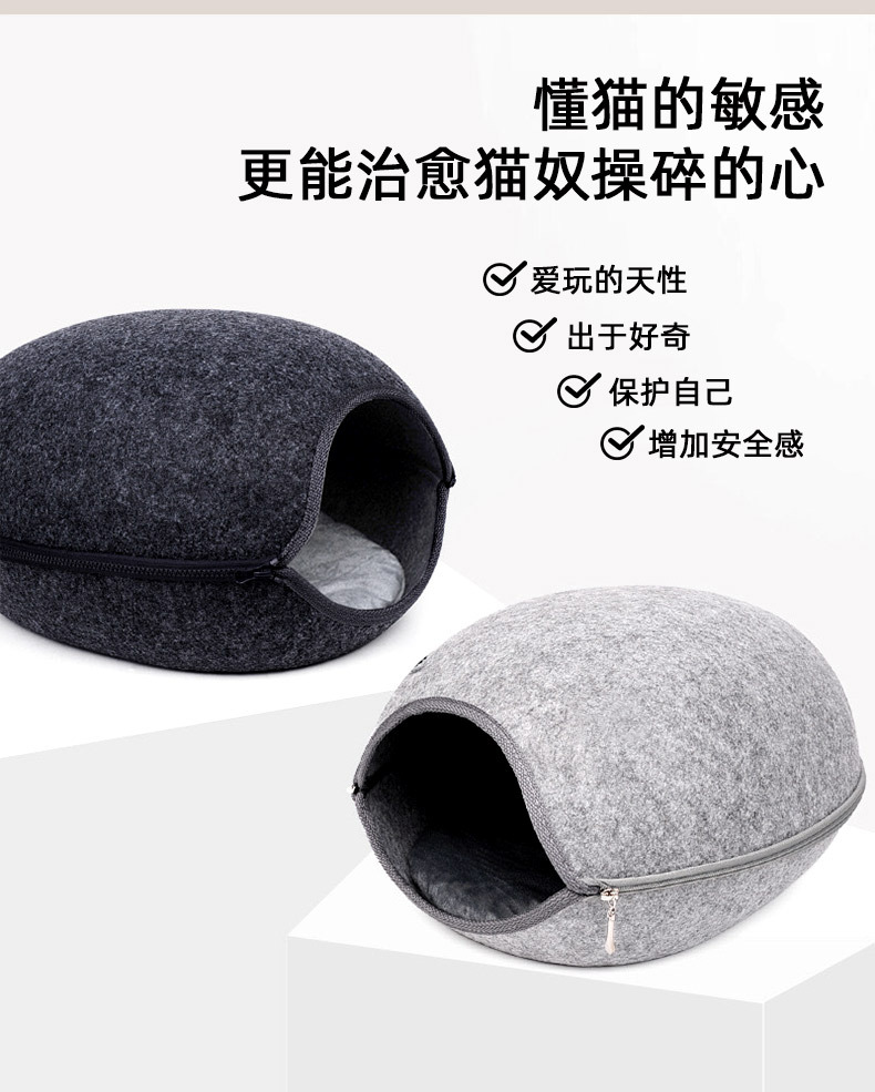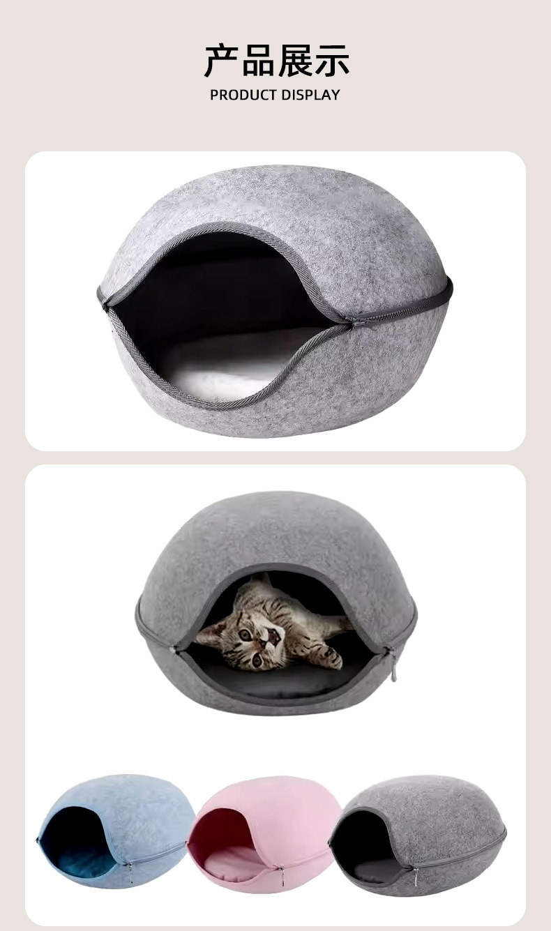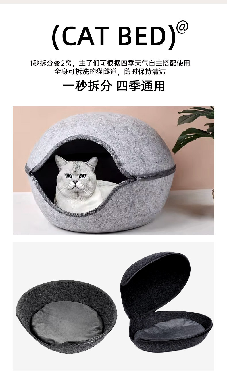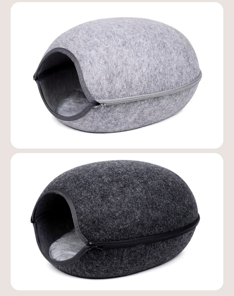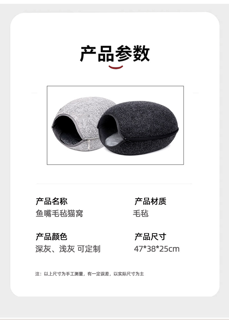 국경을 넘나드는 물고기 입 모양의 펠트 고양이 둥지, 밀폐형, 탈부착 및 세척 가능, 겨울에 따뜻한 고양이, 완전히 둘러싸인 고양이 집, 계란 모양의 고양이 둥지