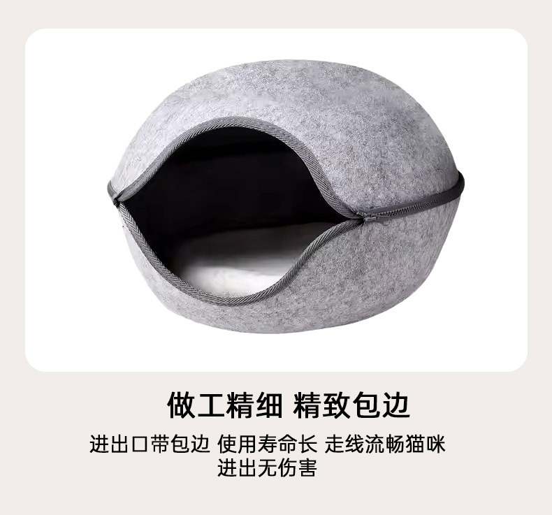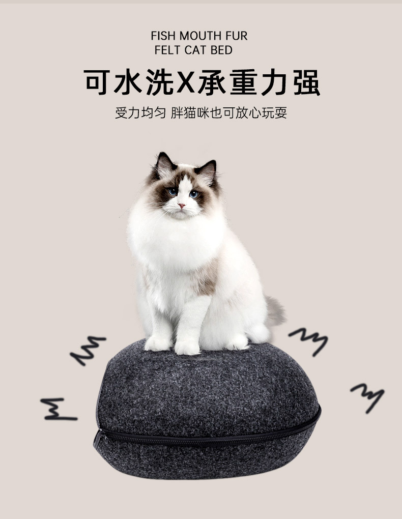 국경을 넘나드는 물고기 입 모양의 펠트 고양이 둥지, 밀폐형, 탈부착 및 세척 가능, 겨울에 따뜻한 고양이, 완전히 둘러싸인 고양이 집, 계란 모양의 고양이 둥지스토어 가기