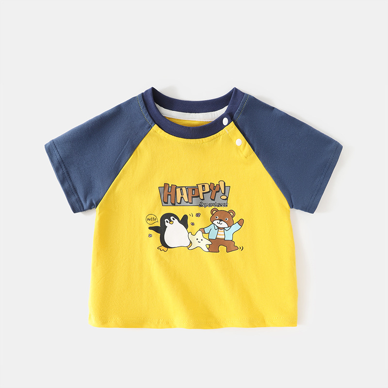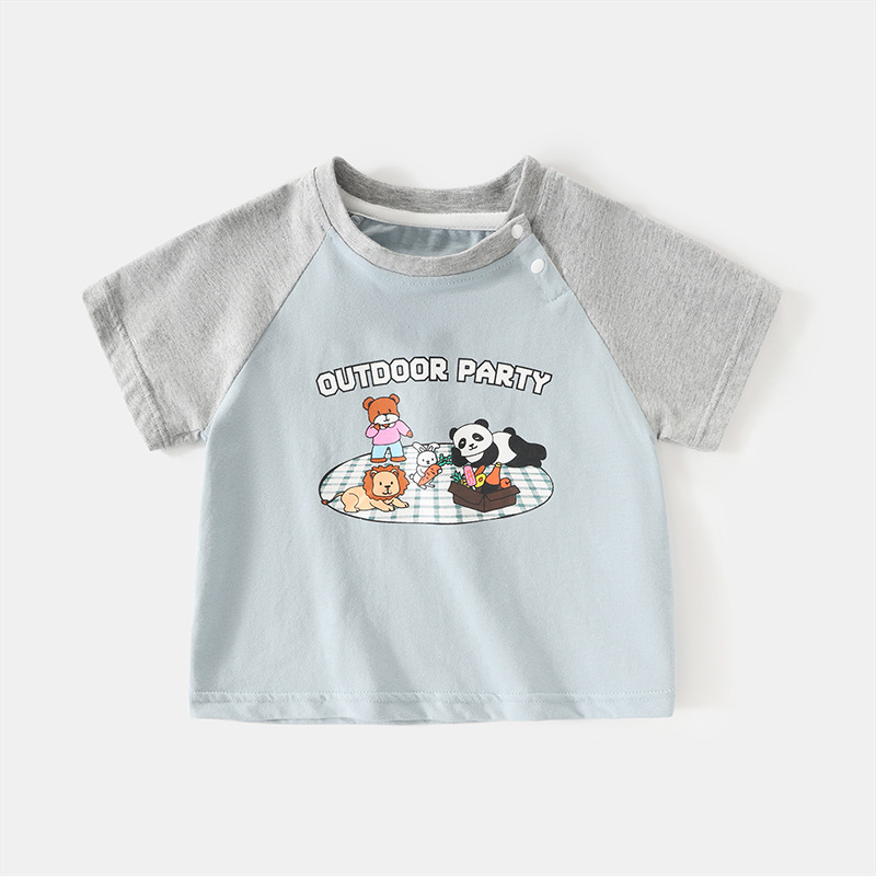 어린이 캐주얼 라글란 반팔 티셔츠 여름 T 순수 코튼 아기 옷 소년과 소녀 아기 여름 반팔상의스토어 가기