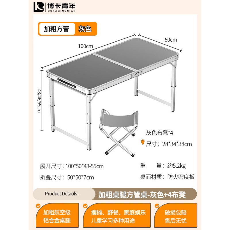 • 업그레이드된 대외 무역 품질 [알루미늄 합금 사각 튜브] 100*50cm 회색 + 천 의자 4개