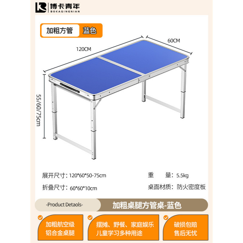• 업그레이드된 대외 무역 품질 [알루미늄 합금 사각 튜브] 100*50cm 파란색 + 천 의자 4개