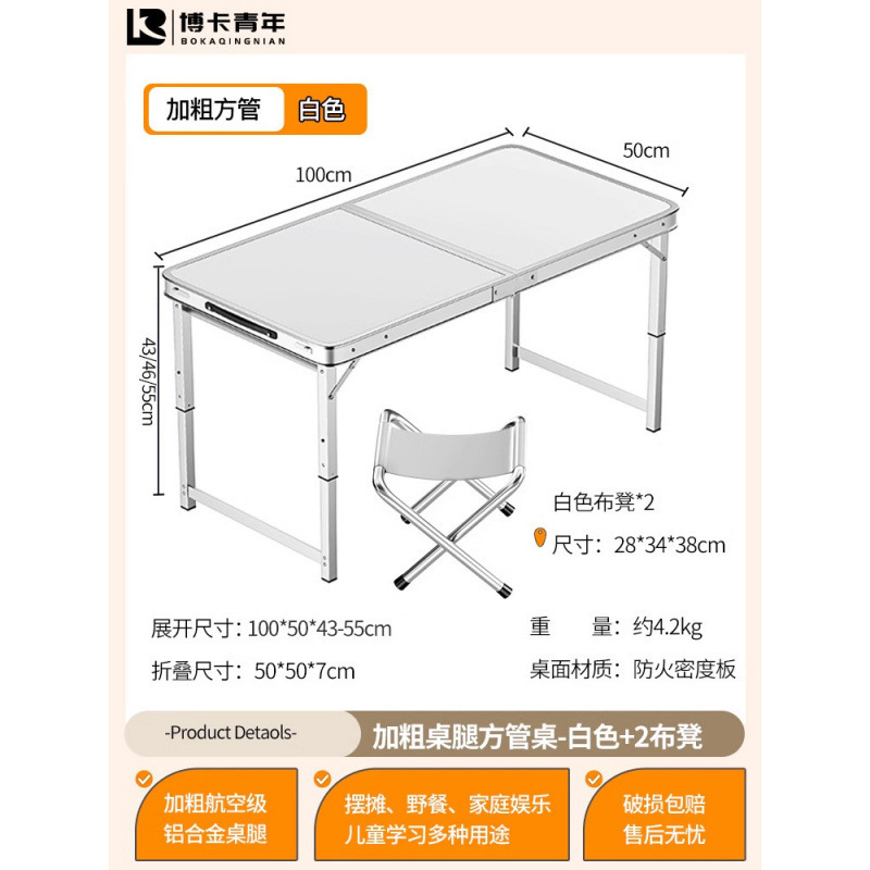 • 업그레이드된 대외 무역 품질 [알루미늄 합금 사각 튜브] 100*50cm 흰색 + 천 의자 2개