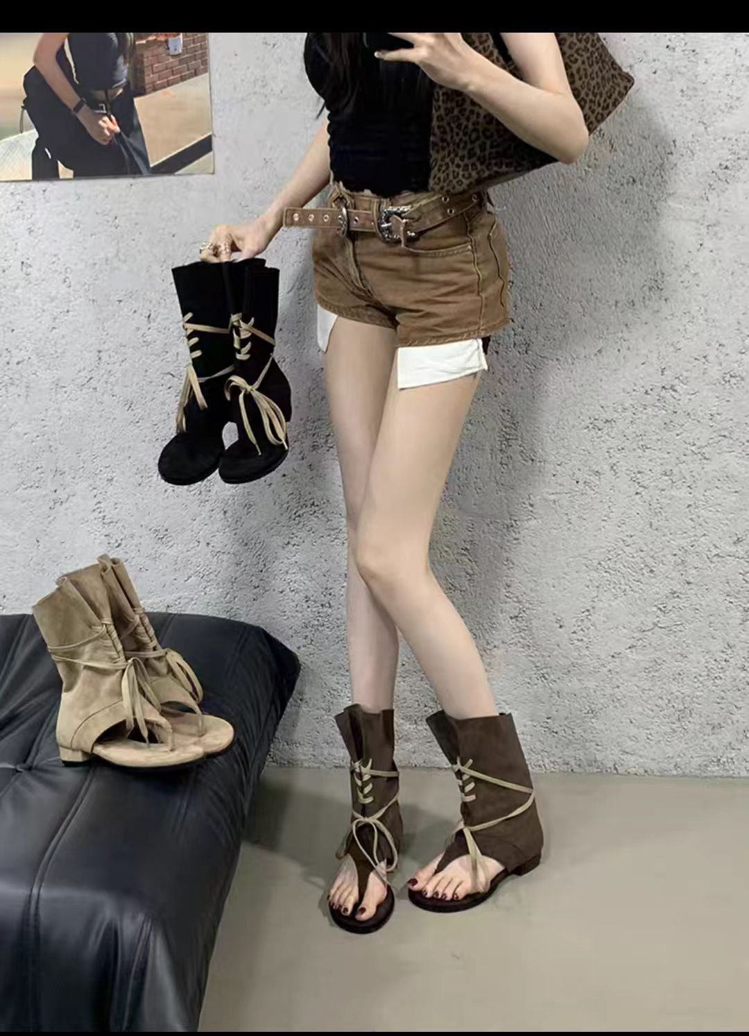 2025년 여름 신상 라운드 토 스트랩 플립플롭 플랫 바닥 비치 로마 휴가 여성 샌들