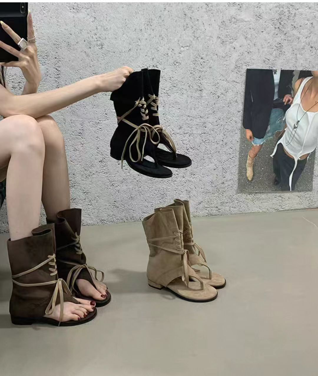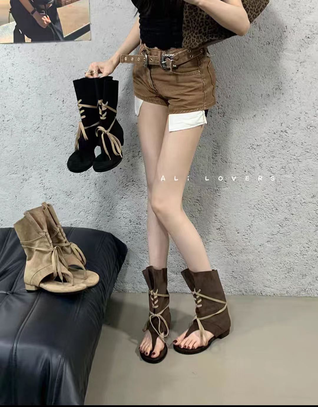 2025년 여름 신상 라운드 토 스트랩 플립플롭 플랫 바닥 비치 로마 휴가 여성 샌들스토어 가기