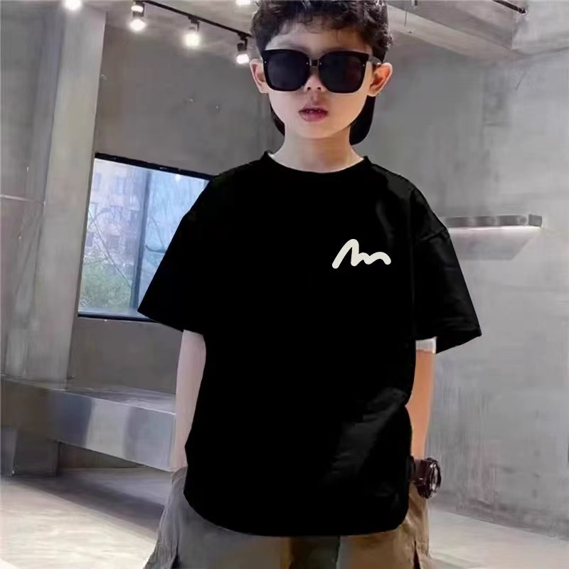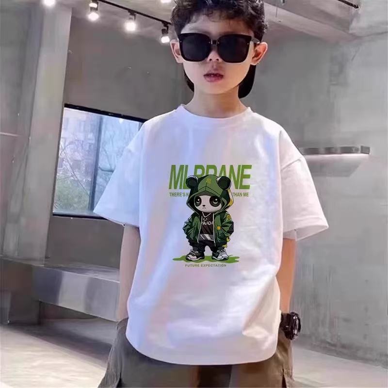 2025 새로운 여름 아동복 순면 소년 반팔 티셔츠 중대형 어린이 흰색 다목적 여름 탑 트렌디 t스토어 가기