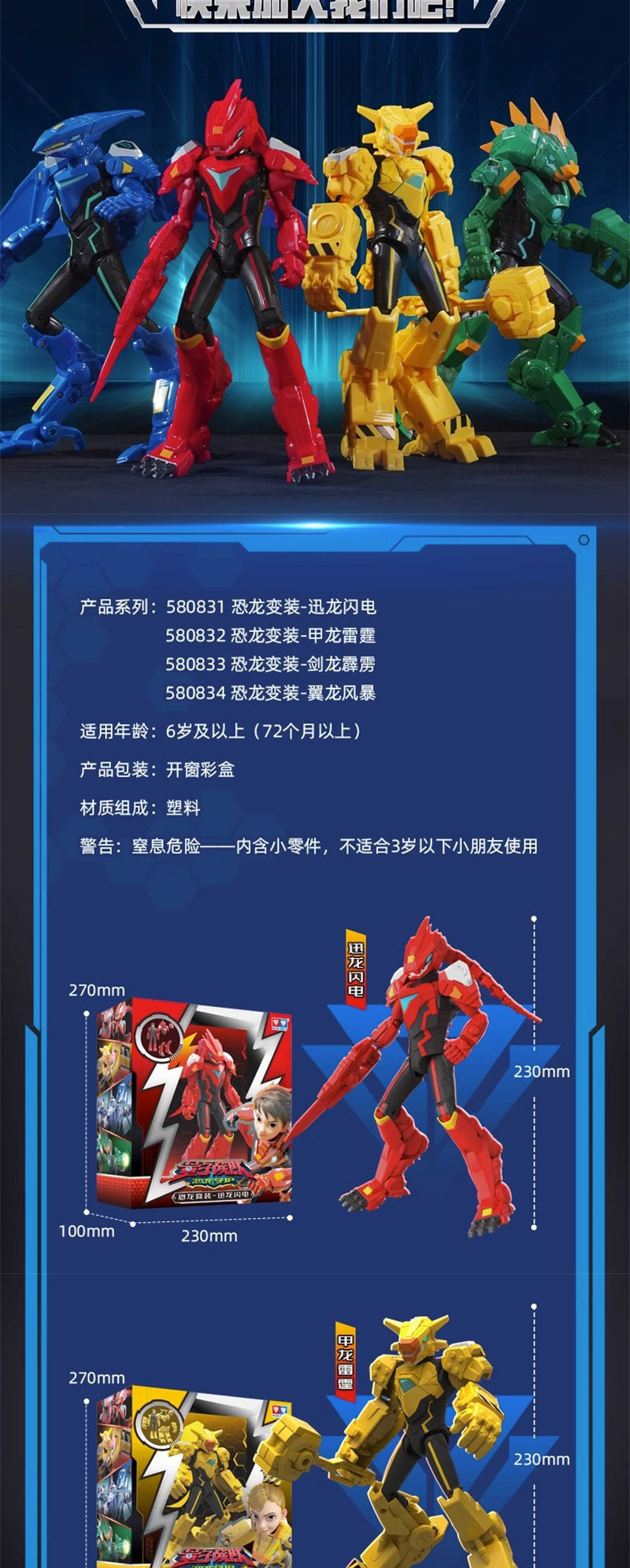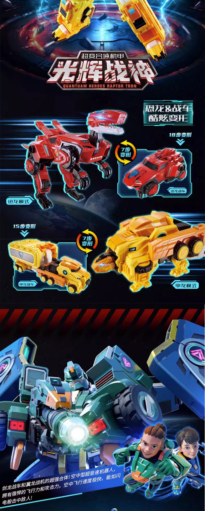 정품 퀀텀 팀 공룡 가디언 변장 인형 움직일 수 있는 변형 소년 장난감 Xunlong Lightning스토어 가기