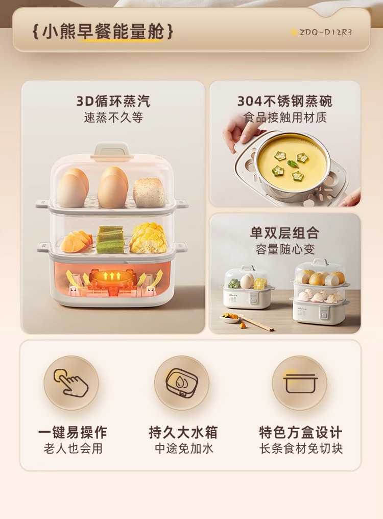 곰돌이 계란찜기 가정용 기숙사 미니 다기능 아침식사 기계 계란찜기 이중 소형 전기찜기 계란찜스토어 가기