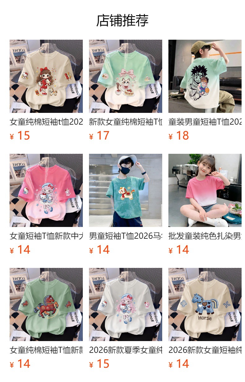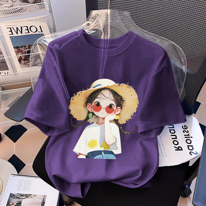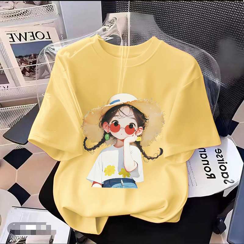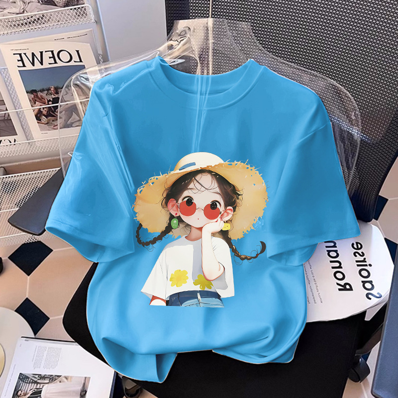 여자 반팔 티셔츠 여름 새로운 스타일 어린이 만화 프린트 서양식 중대형 어린이 순수 코튼 라운드 넥 루즈 탑 유행스토어 가기