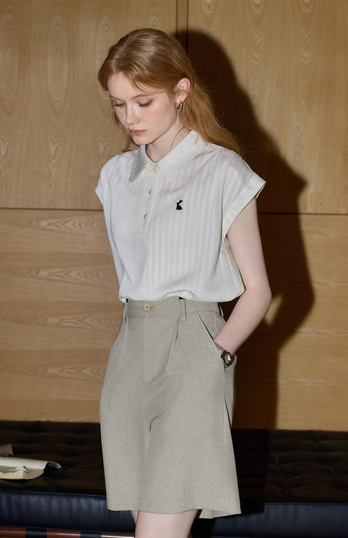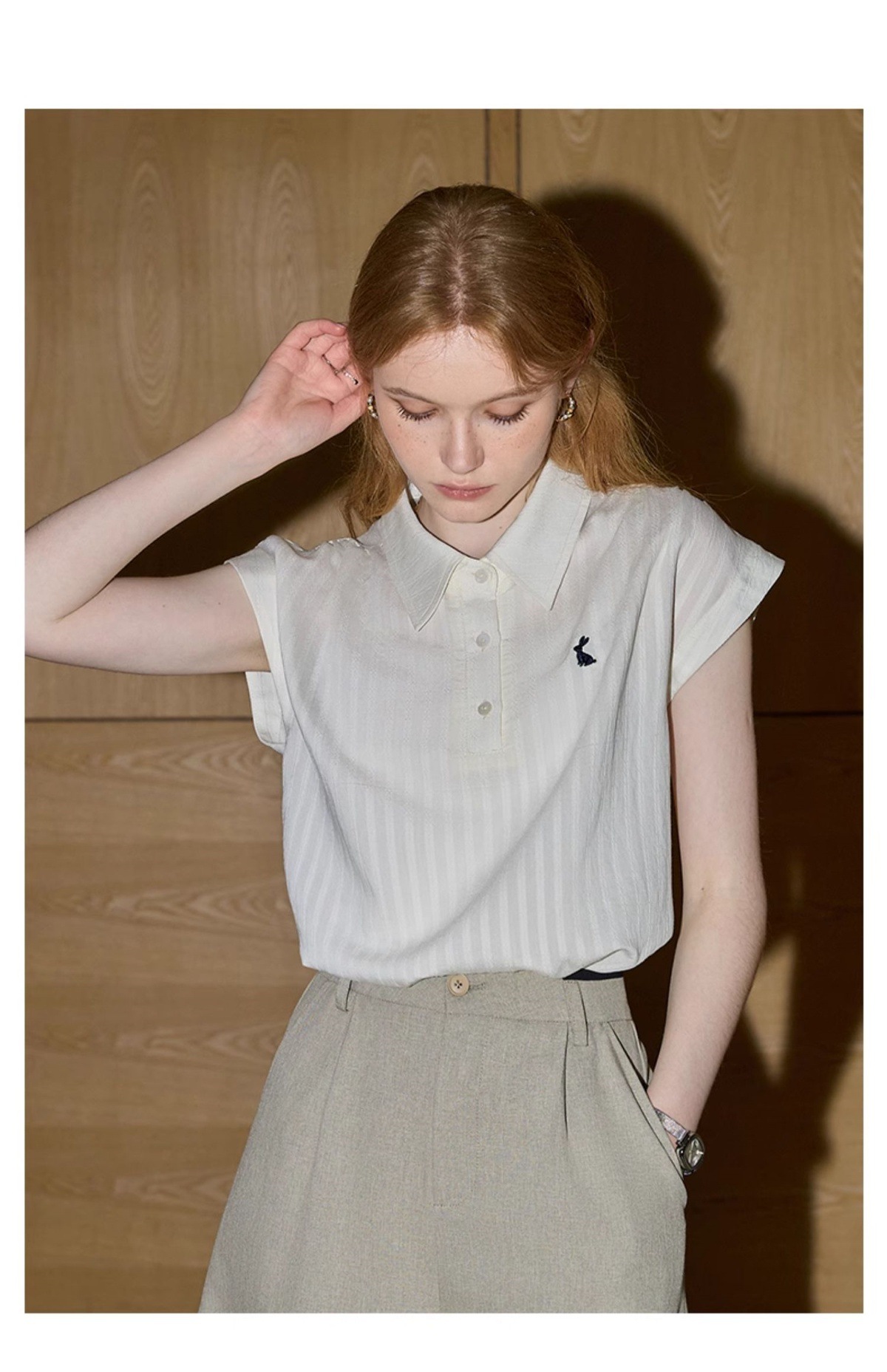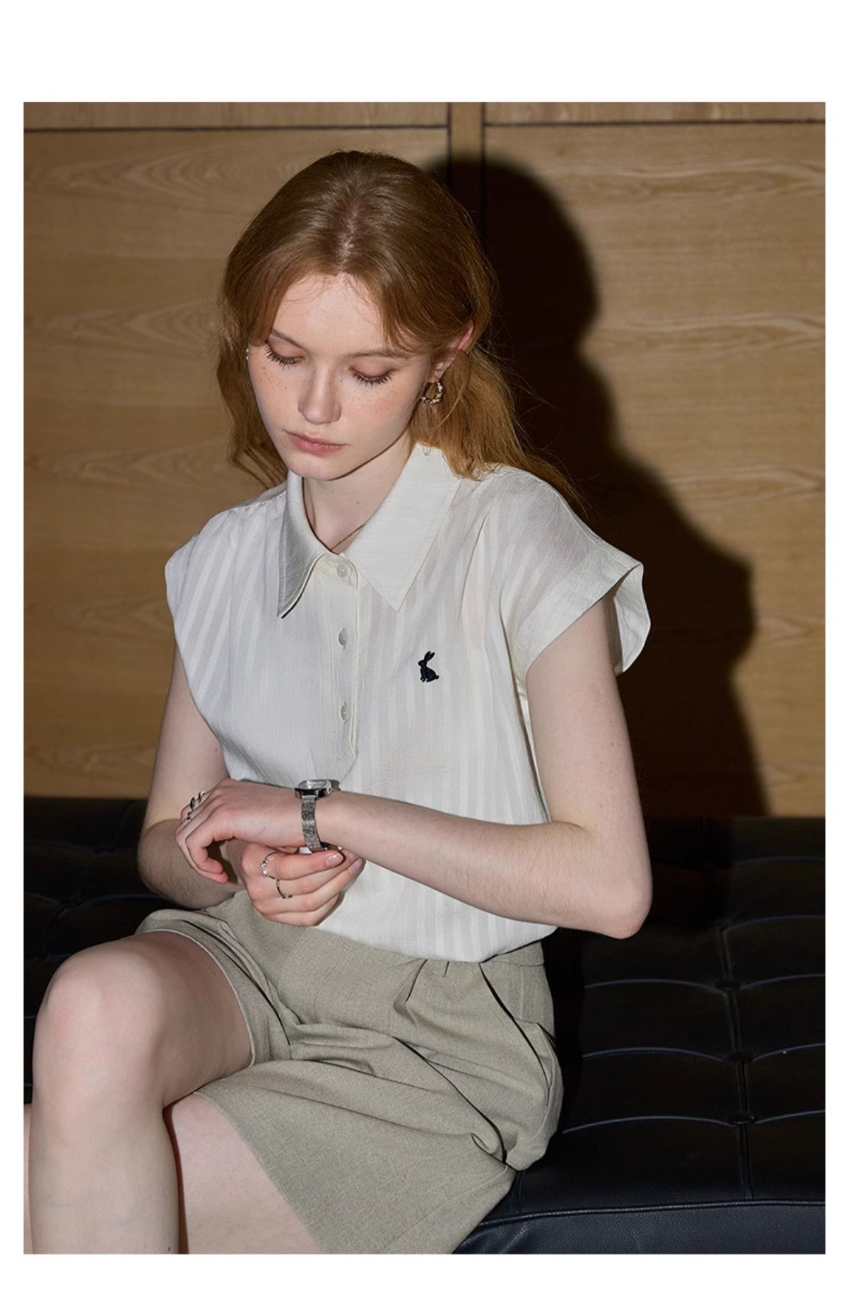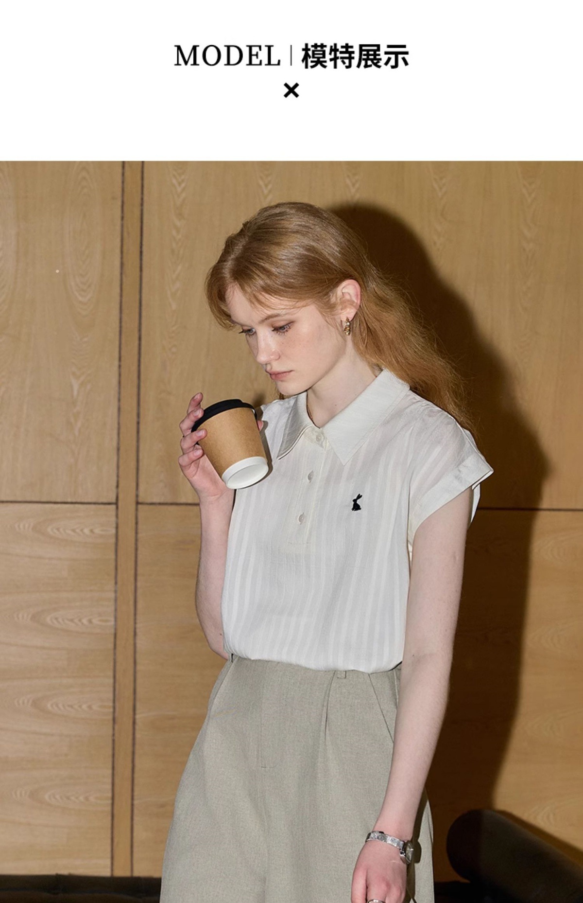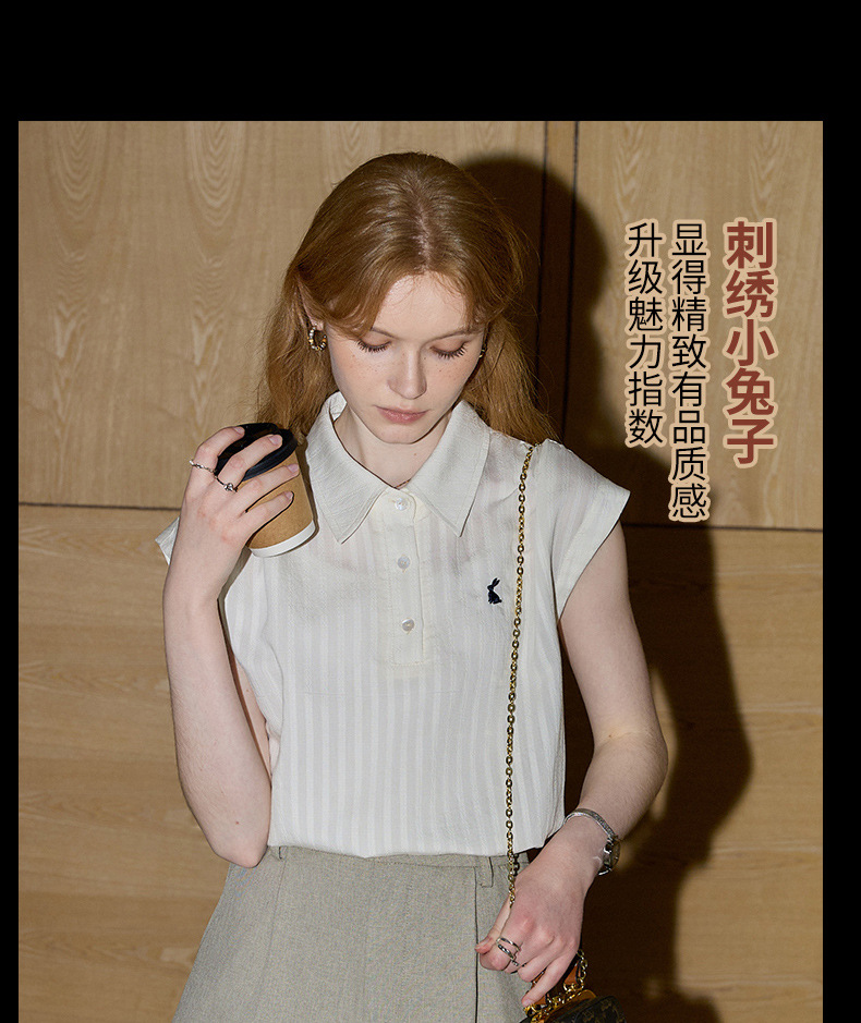 쿠엔의 고급스러운 엘리트 미니멀리스트 폴로 칼라 민소매 셔츠 여성용 2026년 봄 여름 신상 자수 탑스토어 가기